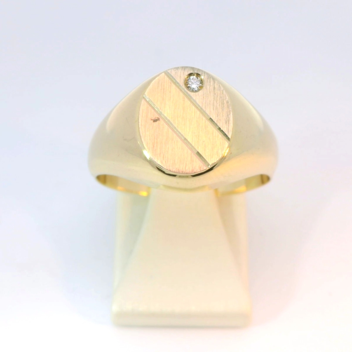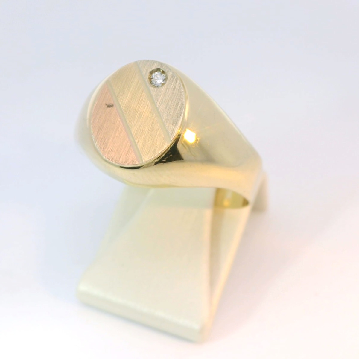 Deze unieke SEAL_RING is gemaakt van 14 karaat tricolor goud en bevat schitterende zirkonia stenen. Het ontwerp is speciaal voor heren en straalt elegantie uit. De ring kan gedragen worden als een statement piece op de middelvinger of als een stijlvolle toevoeging aan je ringvinger. Met deze ring maak je zeker indruk!