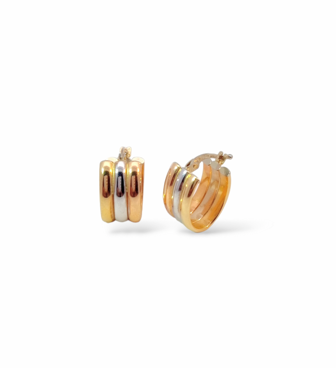 Deze oorringen van Louis Bros zijn vervaardigd uit 14 karaat tricolor(rose-geel-wit) (3.gr). De Oorsieraden hebben een lengte van 17.5 mm en een breedte van 9 mm. Deze oorringen vrolijken iedere outfit op. En eindeloos te combineren met andere gouden sieraden. Deze oorringen is stijlvol, eenvoudig en gemakkelijk te combineren. De sieraden vormen enerzijds een prachtige basis voor een minimalistische look, of kunnen anderzijds uitgebreid worden met verschillende type sieraden voor een rijke en of een feestelijke uitstraling.