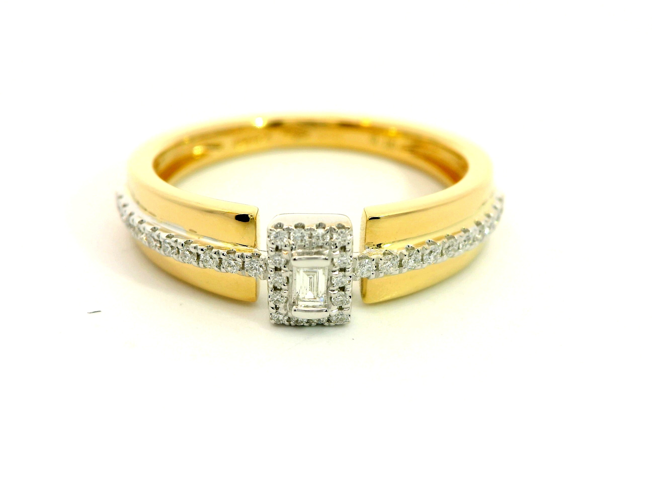 Een symbool van pure elegantie en unieke schoonheid: deze 18 karaat geelgouden ring (4.33 gr) combineert vakmanschap met een hedendaags design dat nooit uit de tijd raakt. Het strakke geelgoud vormt een warm contrast met de verfijnde witgouden zetting, waarin fonkelende diamanten op schitterende wijze tot hun recht komen.