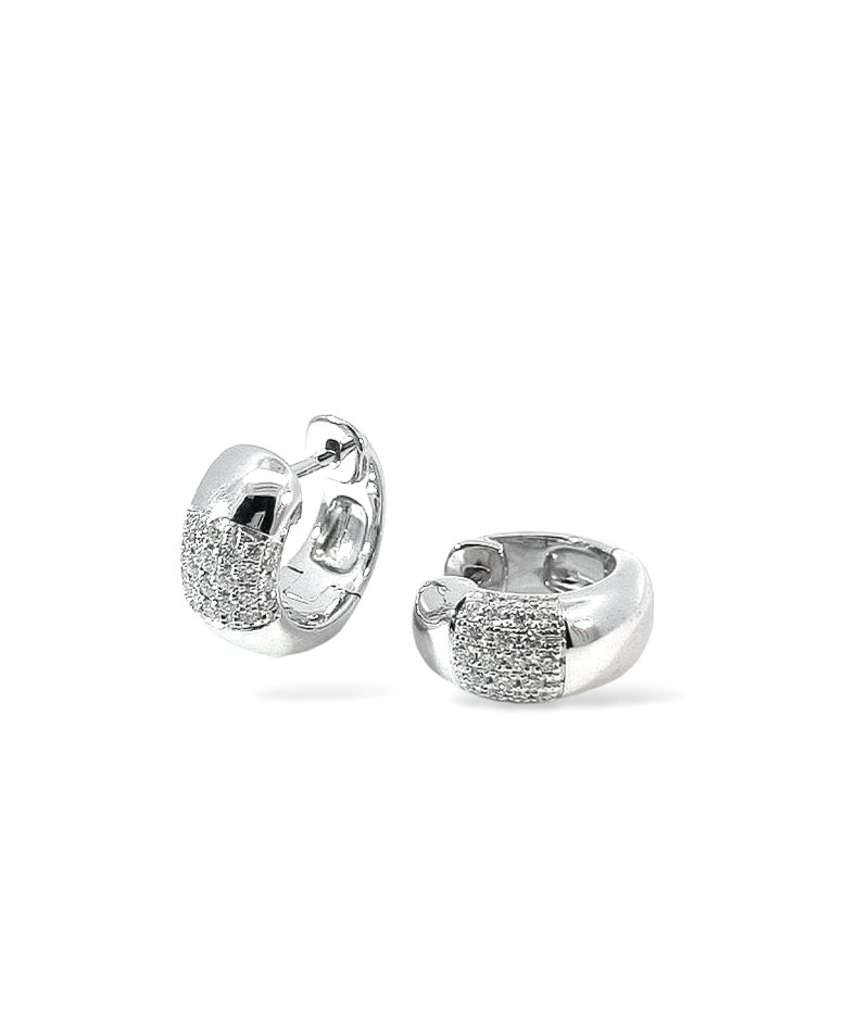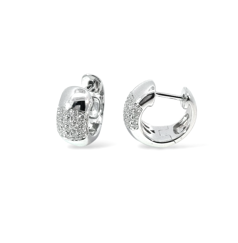 Deze oorringen van Louis Bros zijn vervaardigd uit 14 karaat witgoud(6.20 gr) en zijn gezet met 32 briljant geslepen diamanten met een totaalgewicht van 0.32 crt. De Oorsieraden hebben een diameter van 14 mm, en een breedte van 6 mm.