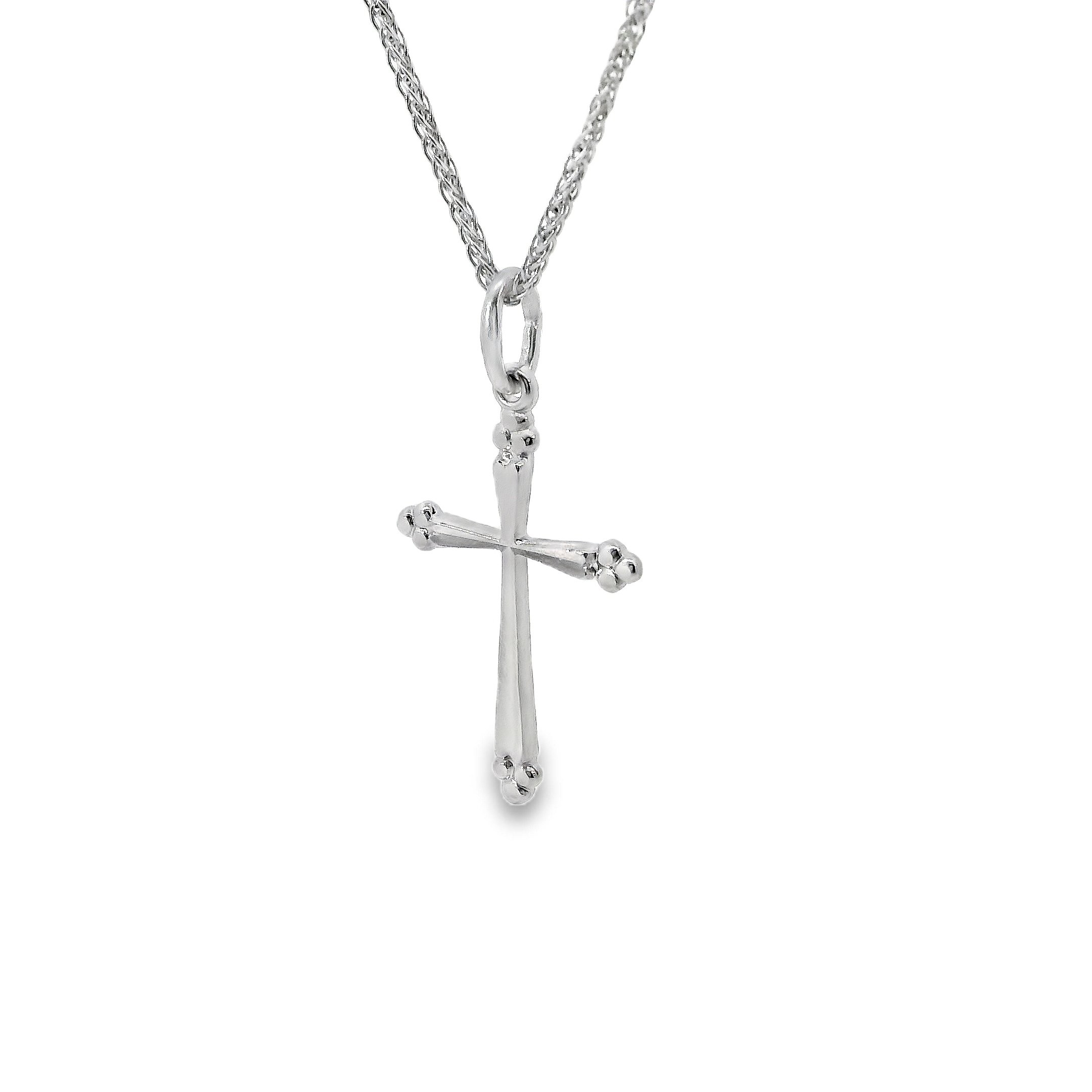 Deze kruis straalt pure elegantie uit door zijn strakke en tijdloze ontwerp. Gemaakt van hoogwaardig witgoud, biedt het een moderne twist op een klassiek symbool. De verfijnde afwerking maakt het perfect om dagelijks te dragen, terwijl het een stijlvolle en betekenisvolle toevoeging is aan elke outfit. Een sieraad dat luxe en symboliek moeiteloos combineert.