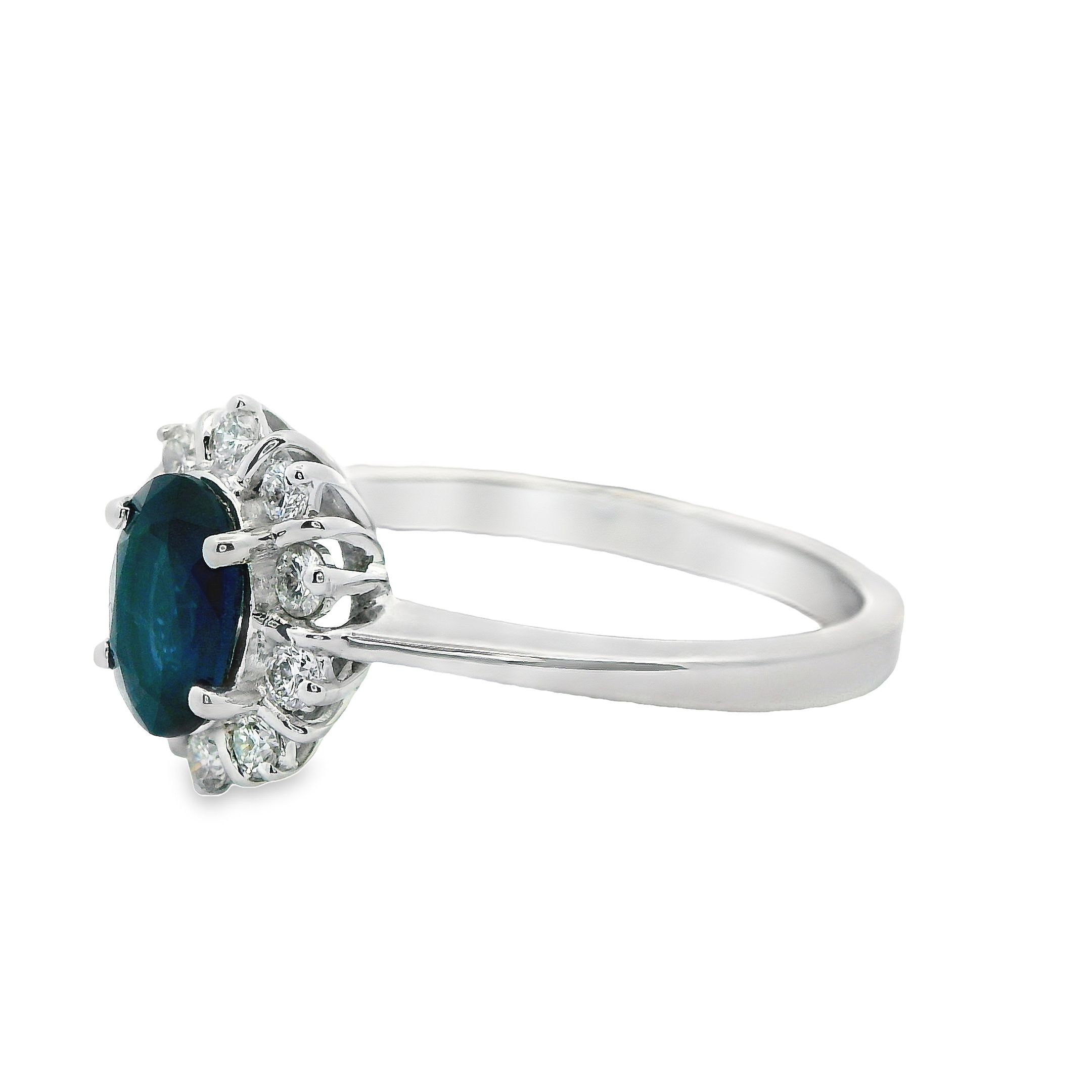 Deze ring van Louis Bros is vervaardigd uit 14 karaat witgoud (3.31 gr.) en is gezet met 10 briljant geslepen diamanten met een totaalgewicht van 0.25ct en 1 saffier 1.00ct. De ring heeft een diameter van 10. mm, minimale breedte van 1.5 mm. en een hoogte van 6.mm. In het hart van deze betoverende witgouden ring schittert een majestueuze blauwe saffier als een fonkelende ster aan de nachtelijke hemel. Met zijn diepe, serene kleur straalt de saffier rust en harmonie uit, terwijl het een gevoel van mysterie en verfijning oproept. Deze ring is niet alleen een symbool van tijdloze schoonheid en elegantie, maar ook van liefde en verbondenheid. Het is een belofte van eeuwige liefde en een herinnering aan de kostbaarheid van elk moment samen. Met zijn verfijnde design en schitterende edelstenen is deze witgouden ring met een blauwe saffier en diamanten een waar kunstwerk dat de ziel betovert en de harten van anderen steelt.