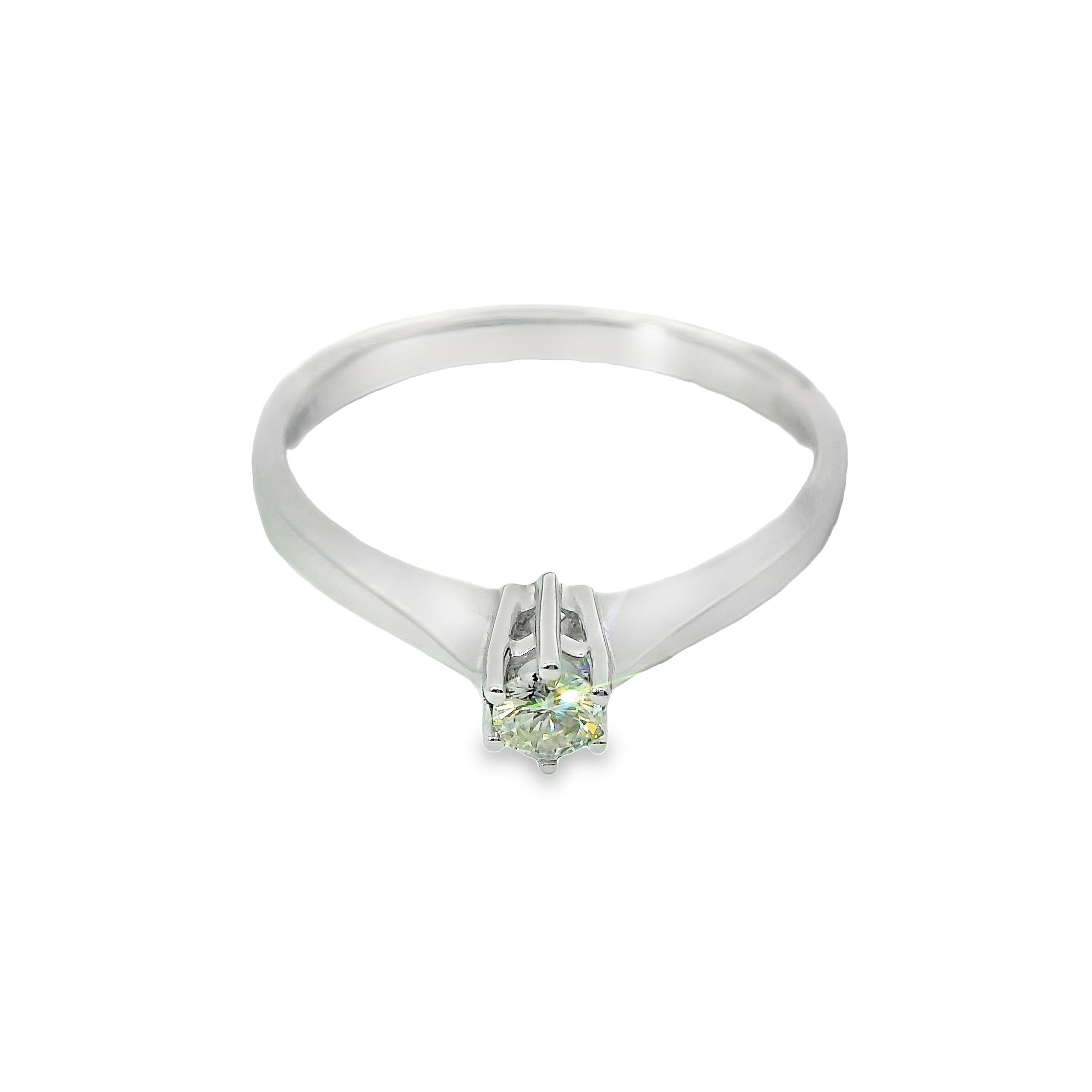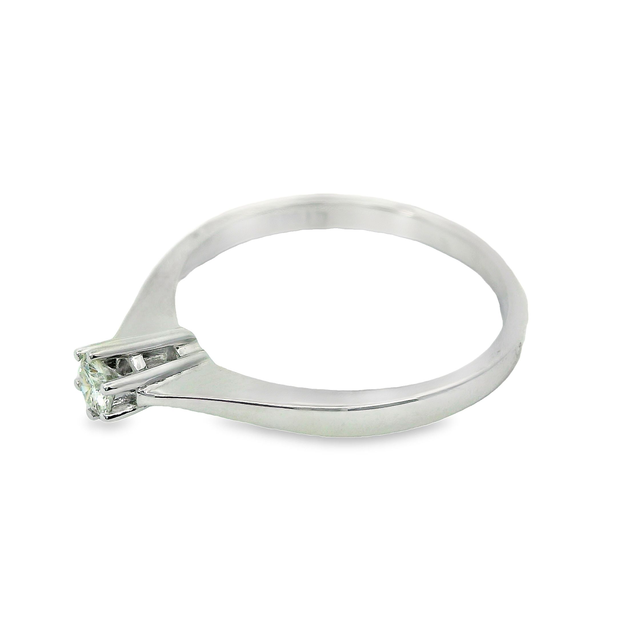 Deze ring van Louis Bros is vervaardigd uit 14 karaat witgoud (2.20 gr.) en is gezet met 1 briljant geslepen diamanten met een totaalgewicht van 0.06ct. De ring heeft een diameter van 2.5 mm, minimale breedte van 2 mm. en een hoogte van 5.5 mm.Deze adembenemende witgouden solitaire ring met een schitterend steentje is de perfecte keuze voor een speciale gelegenheid. De combinatie van het elegante witgoud en het stralende steentje zorgt voor een tijdloos en stijlvol design. Laat deze prachtige ring de blikvanger zijn van elke outfit en laat het de liefde en verbondenheid symboliseren. Een betoverende keuze voor die ene speciale persoon in je leven.