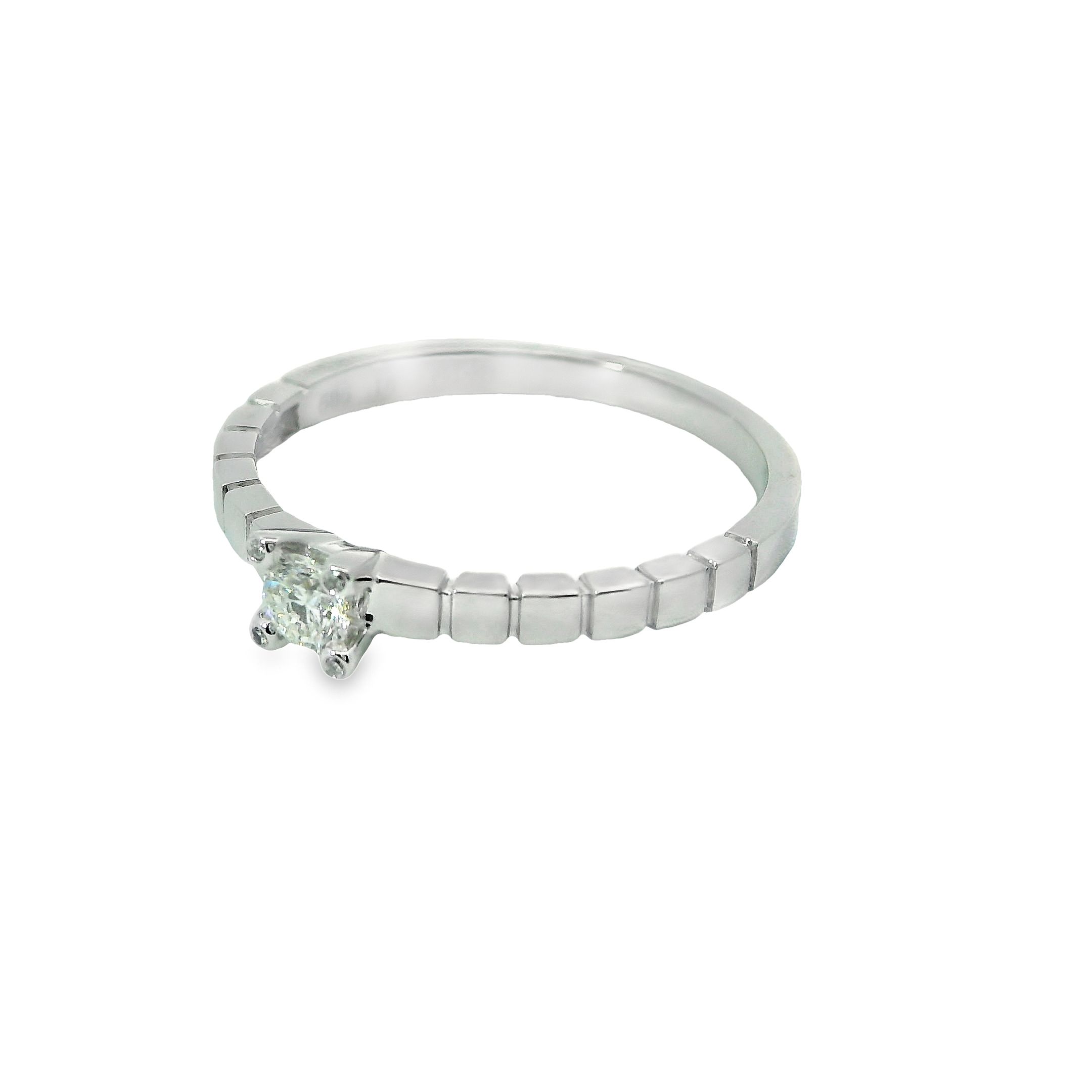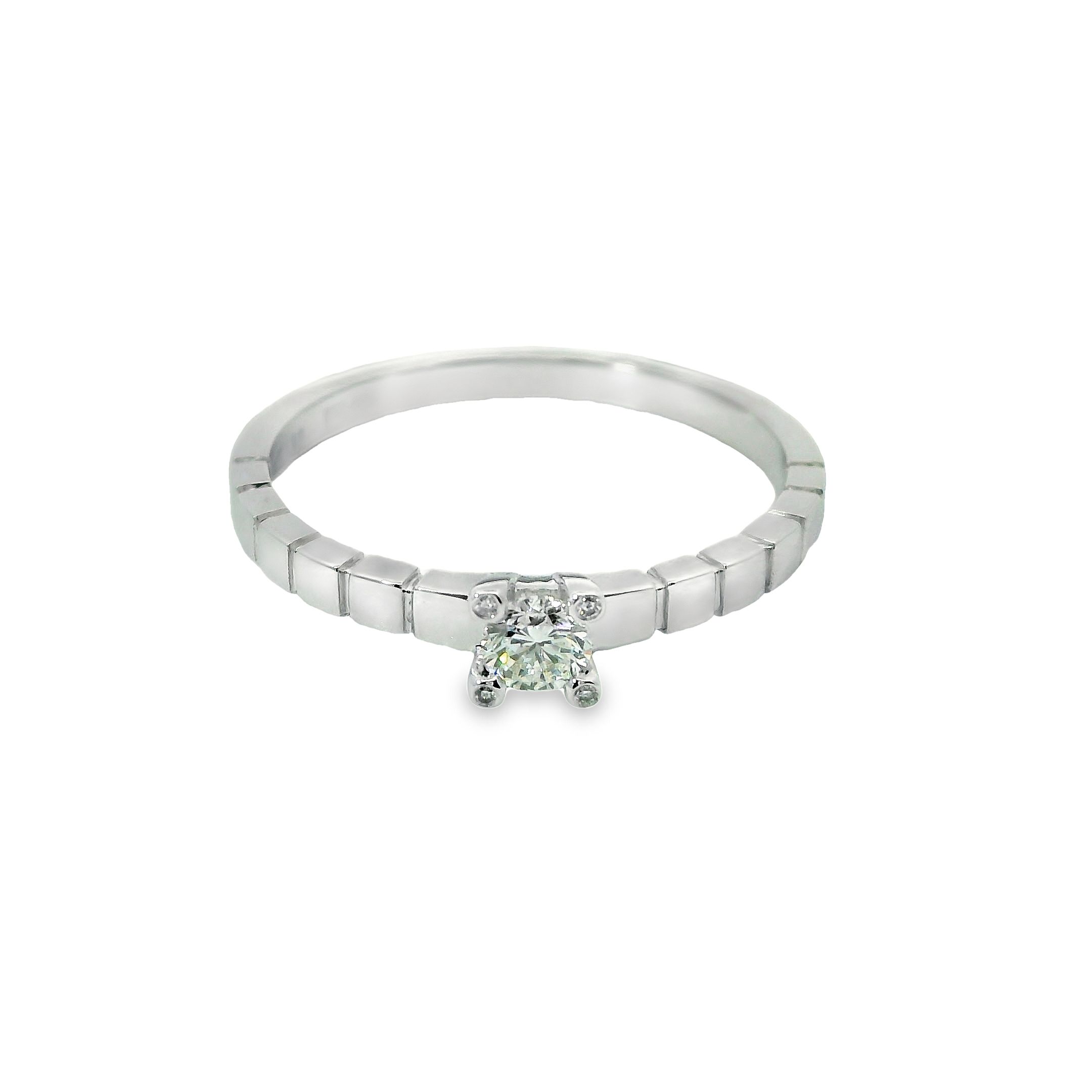 Deze ring van Louis Bros is vervaardigd uit 14 karaat witgoud (2.15 gr.) en is gezet met 15 briljant geslepen diamanten met een totaalgewicht van 0.16ct. De ring heeft een diameter van 3.5 mm, minimale breedte van 2 mm. en een hoogte van 3.5 mm. Deze adembenemende witgouden solitaire ring met een schitterend steentje is de perfecte keuze voor een speciale gelegenheid. De combinatie van het elegante witgoud en het stralende steentje zorgt voor een tijdloos en stijlvol design. Laat deze prachtige ring de blikvanger zijn van elke outfit en laat het de liefde en verbondenheid symboliseren. Een betoverende keuze voor die ene speciale persoon in je leven.