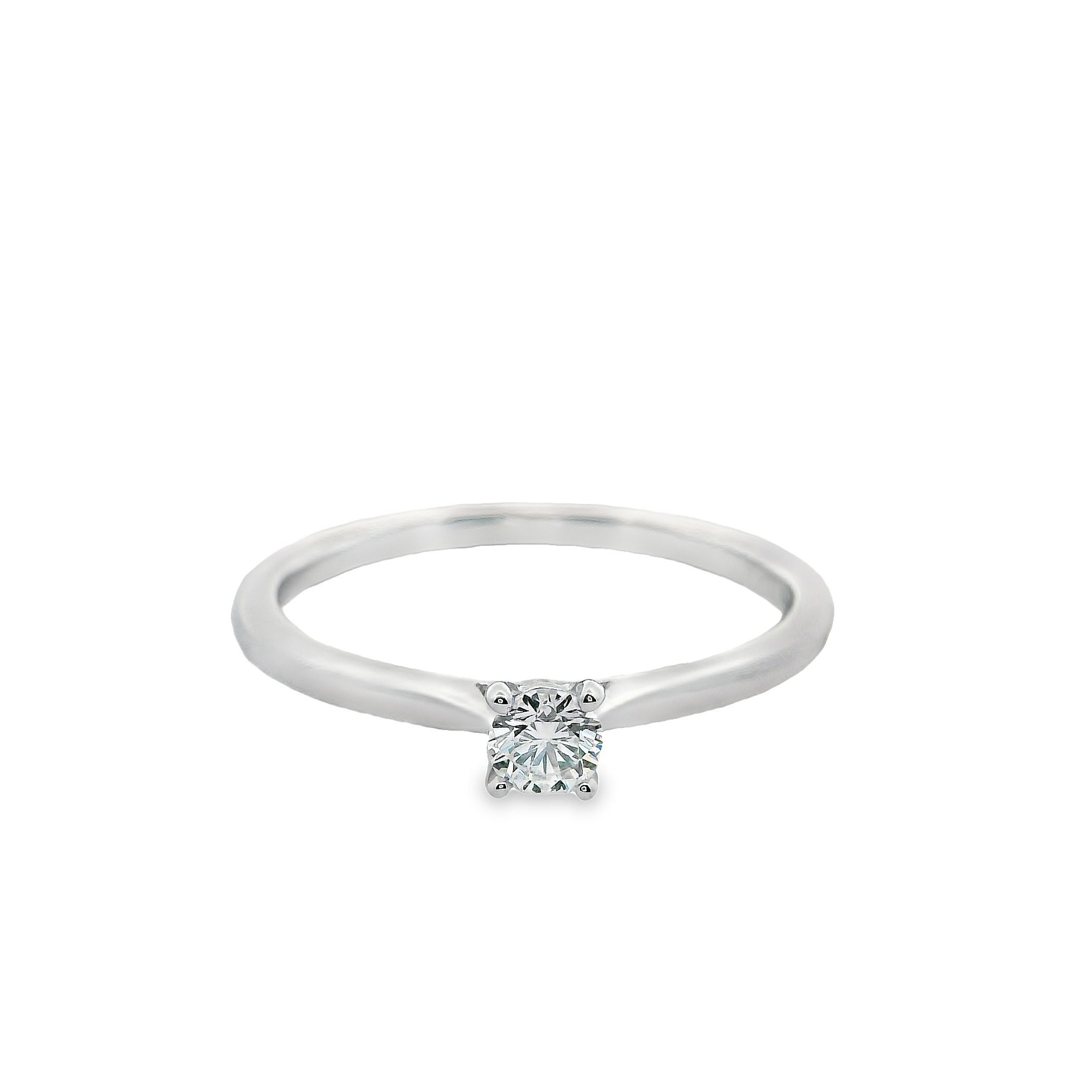 Deze ring van Louis Bros is vervaardigd uit 14 karaat witgoud (1.85 gr.) en is gezet met 1 briljant geslepen diamanten met een totaalgewicht van 0.15ct. De ring heeft een diameter van 3 mm, minimale breedte van 1.5 mm. en een hoogte van 4.5 mm. Deze ring straalt een tijdloze schoonheid uit, perfect voor iedere gelegenheid. Het minimalistische ontwerp en de glinsterende diamant maken deze ring tot een stijlvolle en verfijnde keuze. Met deze ring om je vinger voeg je een vleugje elegantie toe aan elke outfit.
