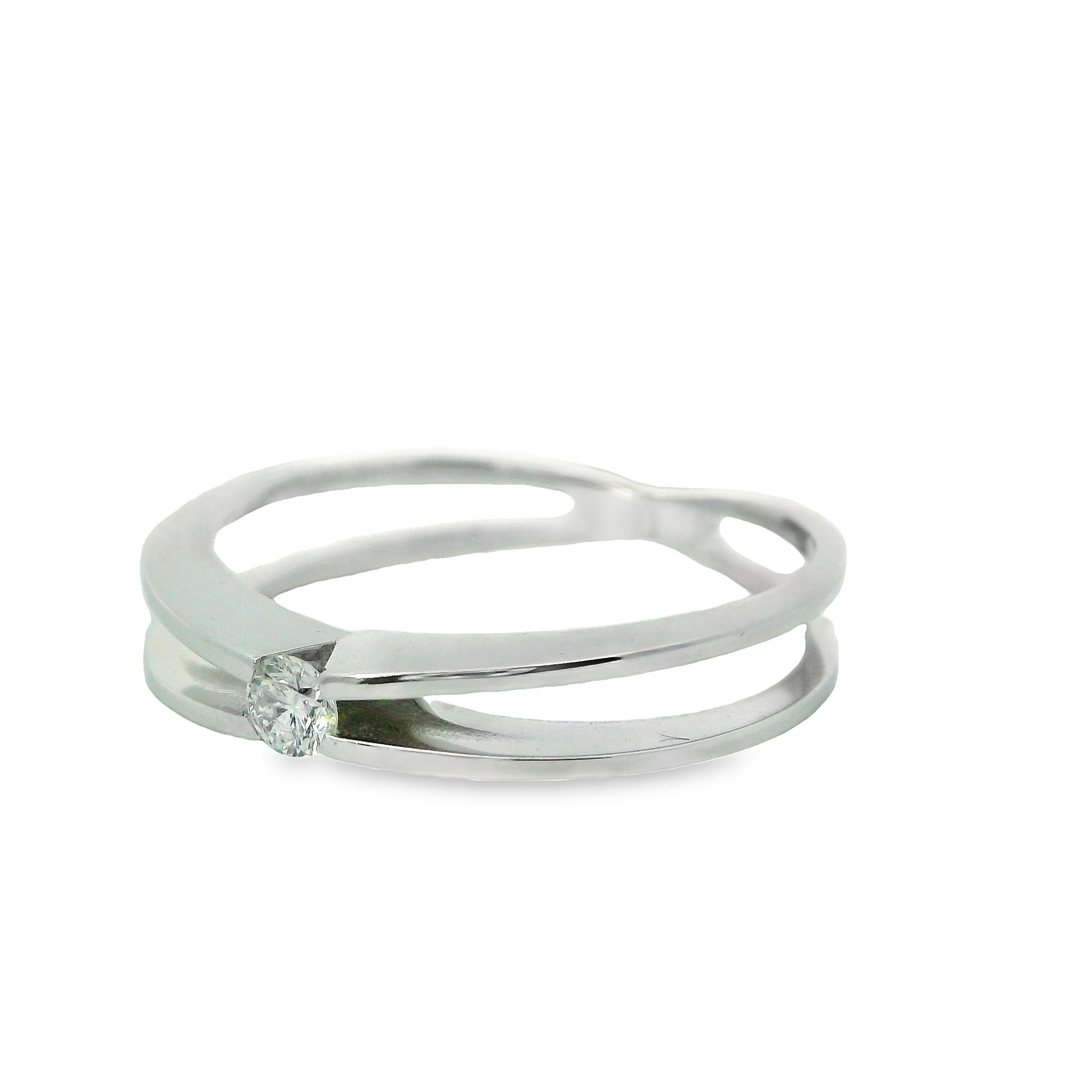 Deze ring van Louis Bros is vervaardigd uit 14 karaat witgoud (2.35 gr.) en is gezet met 1 briljant geslepen diamanten met een totaalgewicht van 0.10ct. De ring heeft een breedte van 3.5 mm en een hoogte van 3.5 mm. Deze ring bestaat uit onze lijn van exclusieve modellen sieraden met prachtige designs van hoge kwaliteit.