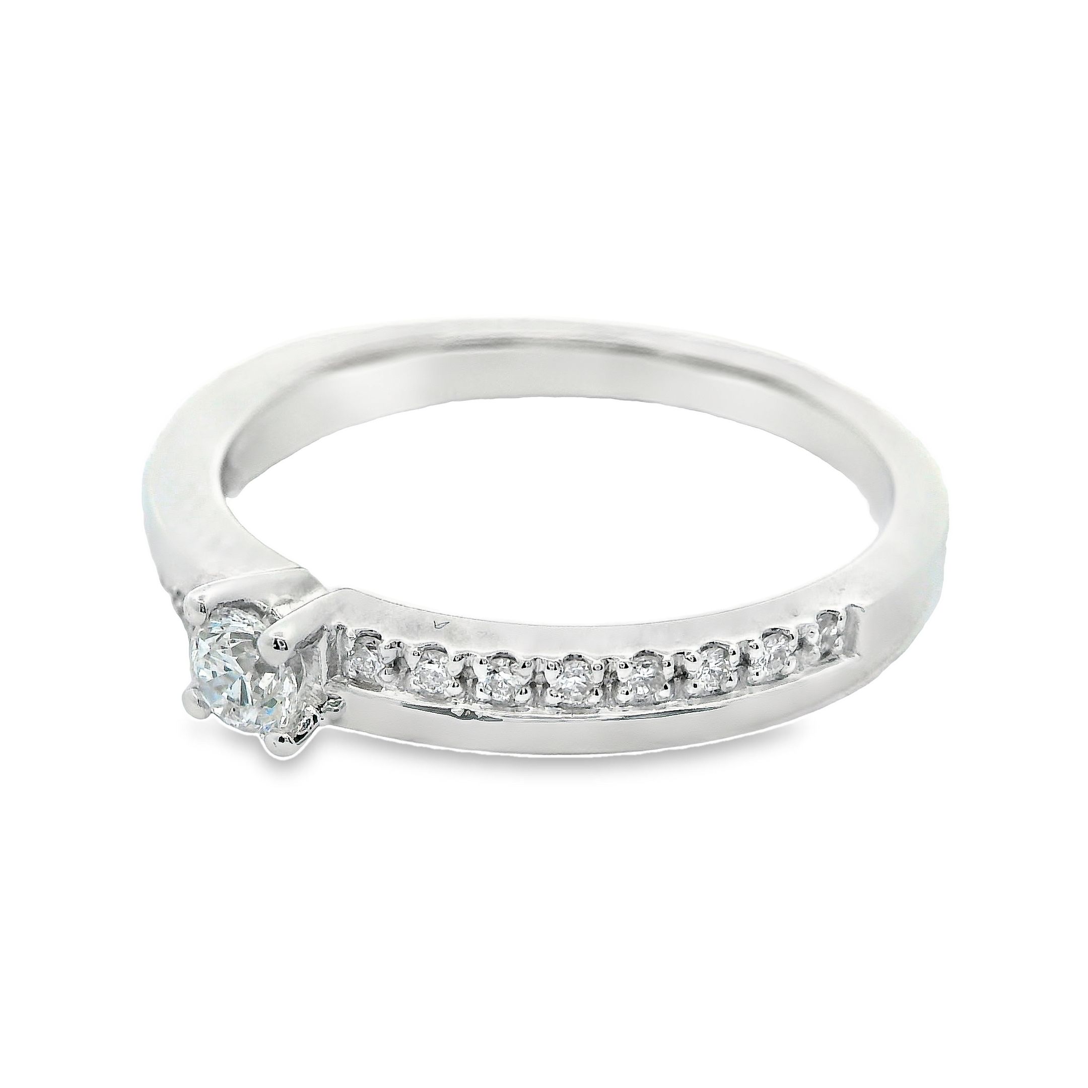 Deze ring van Louis Bros is vervaardigd uit 14 karaat witgoud (3.50gr) en is gezet met 17 briljant geslepen diamanten met een totaalgewicht van 0.23crt. Deze ring bestaat uit onze lijn van exclusieve modellen sieraden met prachtige designs van hoge kwaliteit.