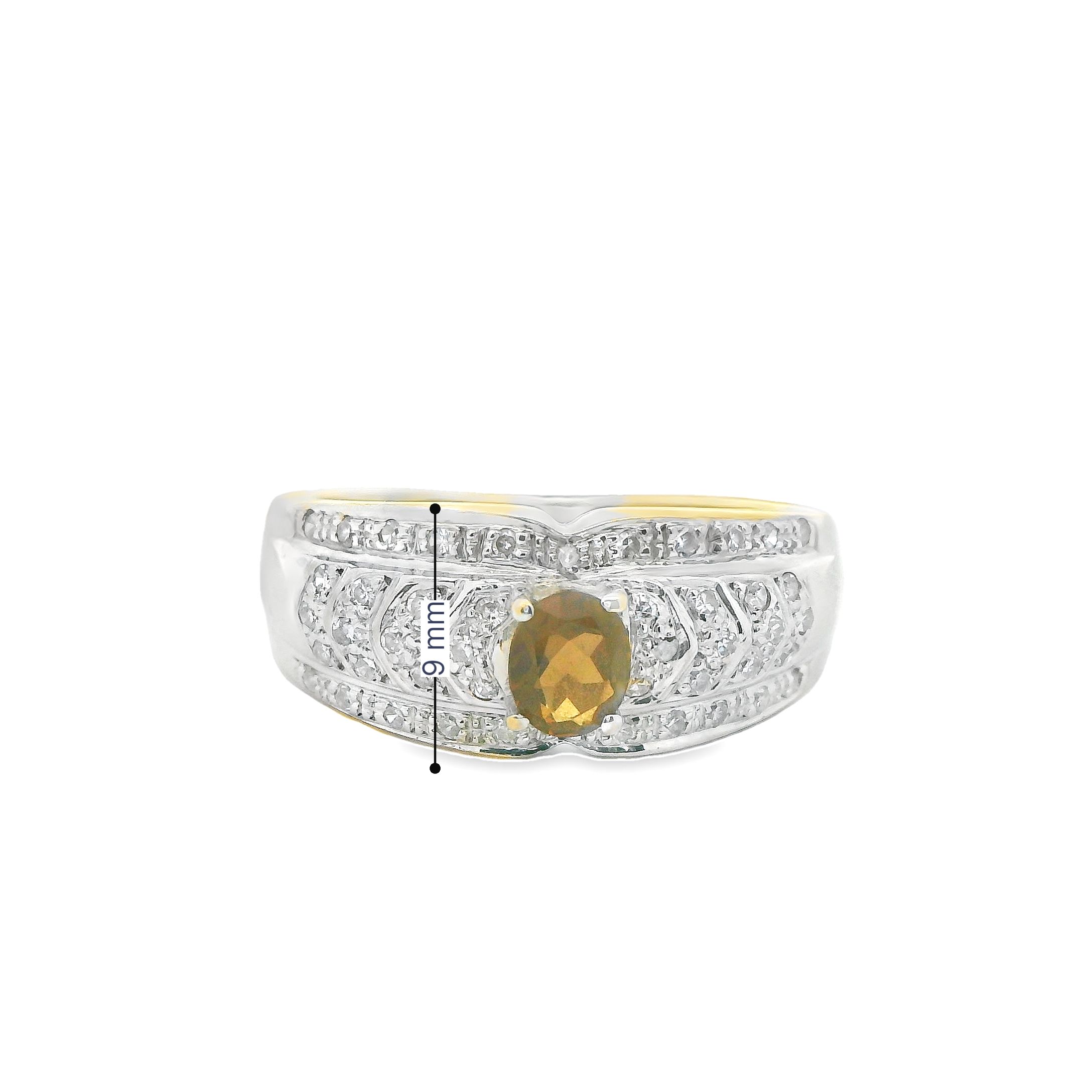 Deze elegante ring is vervaardigd uit  14 karaat witgoud (5.05) en is versierd met zowel een schitterende diamant als een uniek bruin steentje. De ring is tweedehands en heeft een verfijnde vintage uitstraling, waardoor hij een uniek en tijdloos sieraad is. De sprankelende diamant en het warme bruine steentje in combinatie met het koele witgoud vormen samen een bijzondere en klassieke look. Ondanks zijn tweedehands status verkeert de ring in uitstekende staat, klaar om een nieuw hoofdstuk te beginnen met zijn volgende eigenaar.