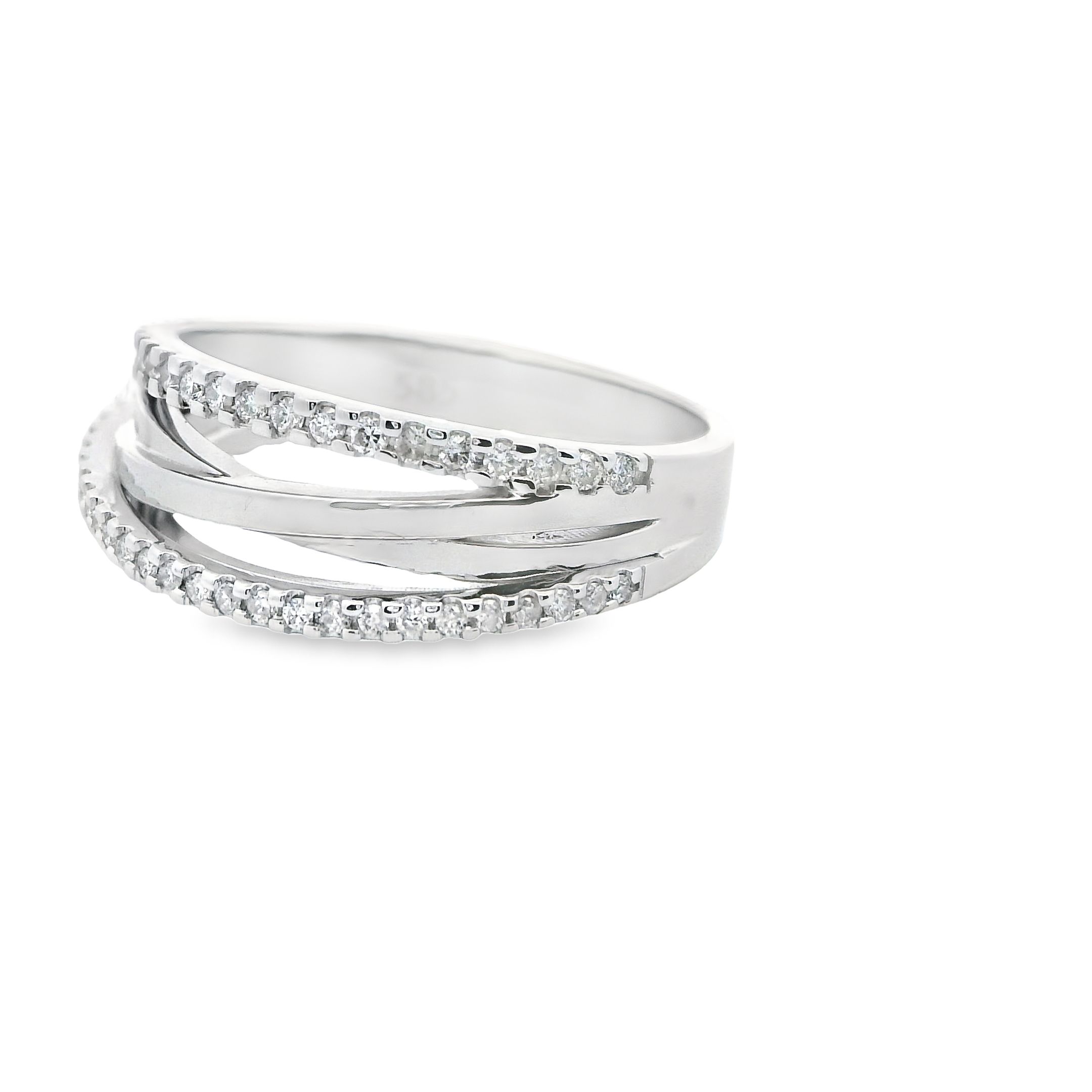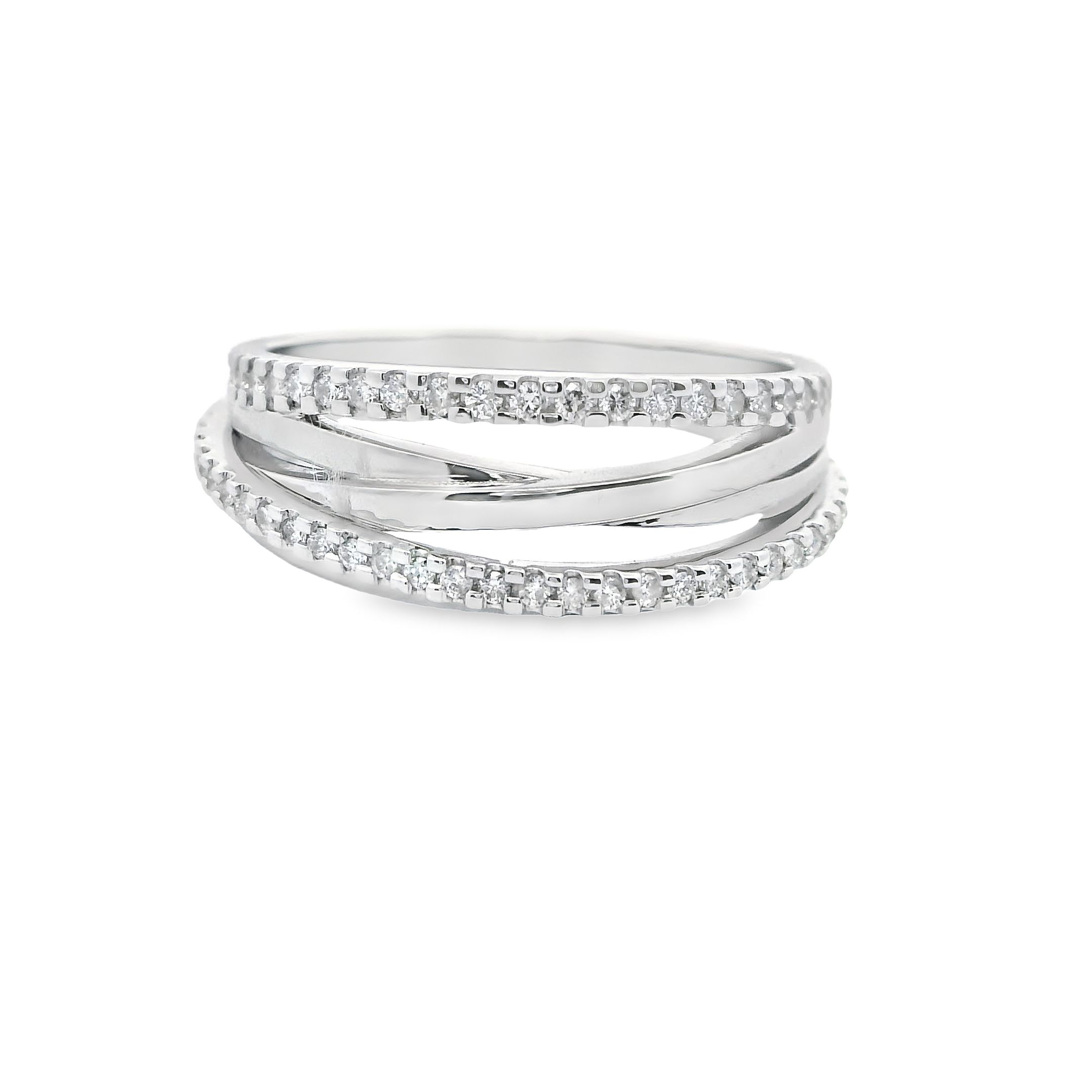 Deze exclusieve ring van Louis Bros is vervaardigd uit 14 karaat witgoud (5.14 gr.) en is gezet met 31 briljant geslepen diamanten met een totaalgewicht van 0.31 ct. De ring heeft een breedte van 6 mm en dikte van 2.5 mm. Met deze ring om je vinger ben jij het stralende middelpunt bij elke gelegenheid. Deze ring bestaat uit onze lijn van exclusieve modellen sieraden met prachtige designs van hoge kwaliteit.