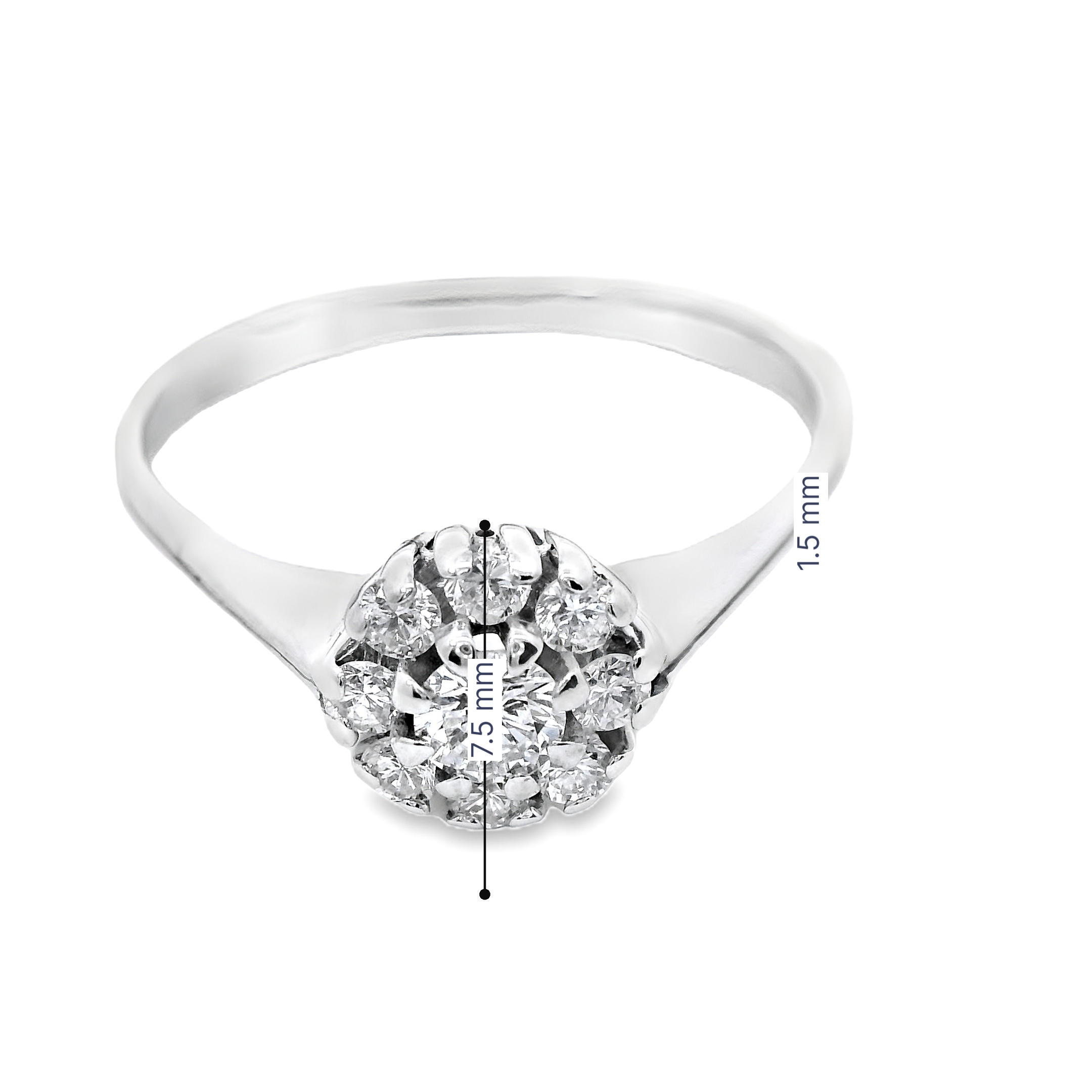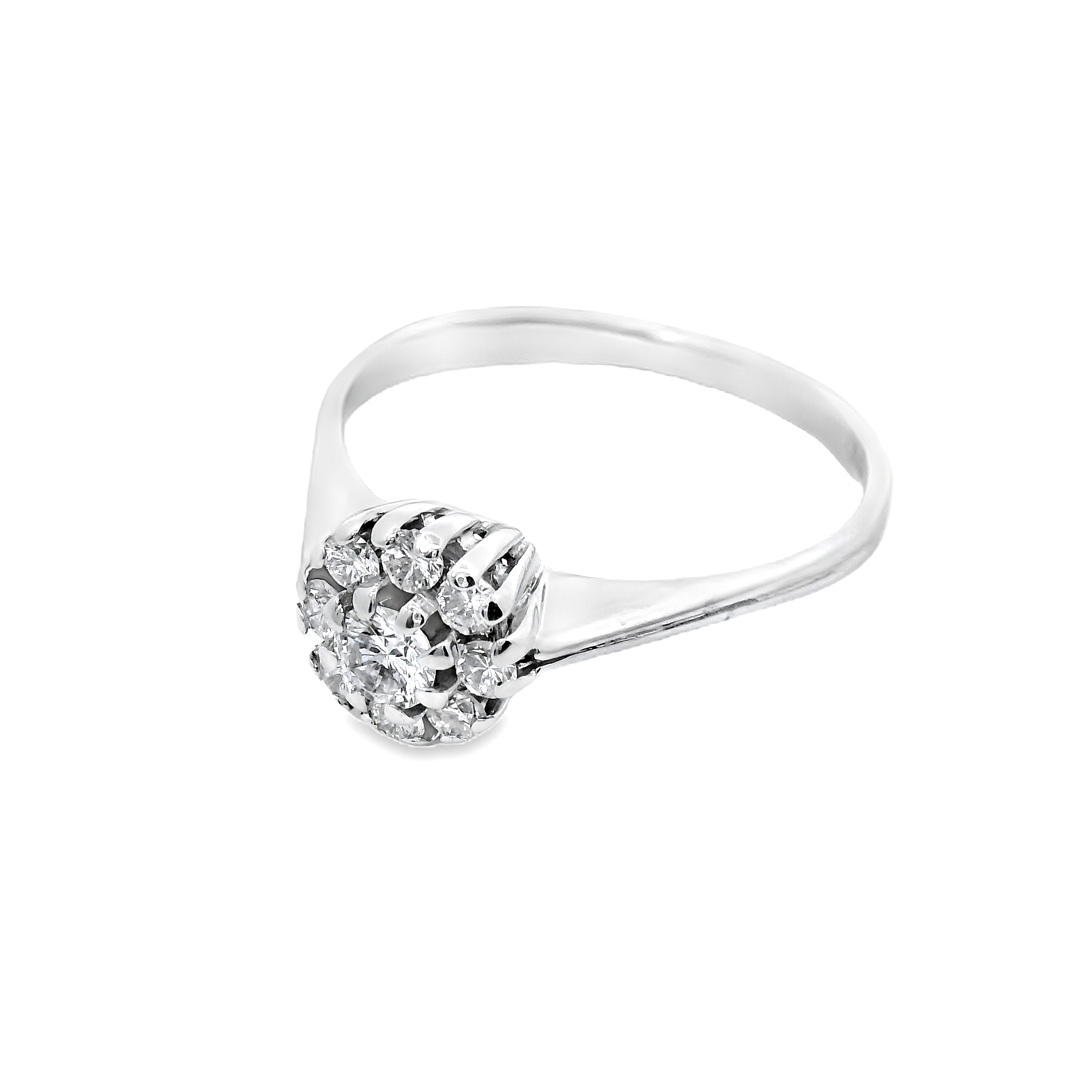 Deze ring van Louis Bros is vervaardigd uit 14 karaat witgouden (2.29 gr.) en is gezet met 9 briljant geslepen diamanten met een totaalgewicht van 0.17ct.