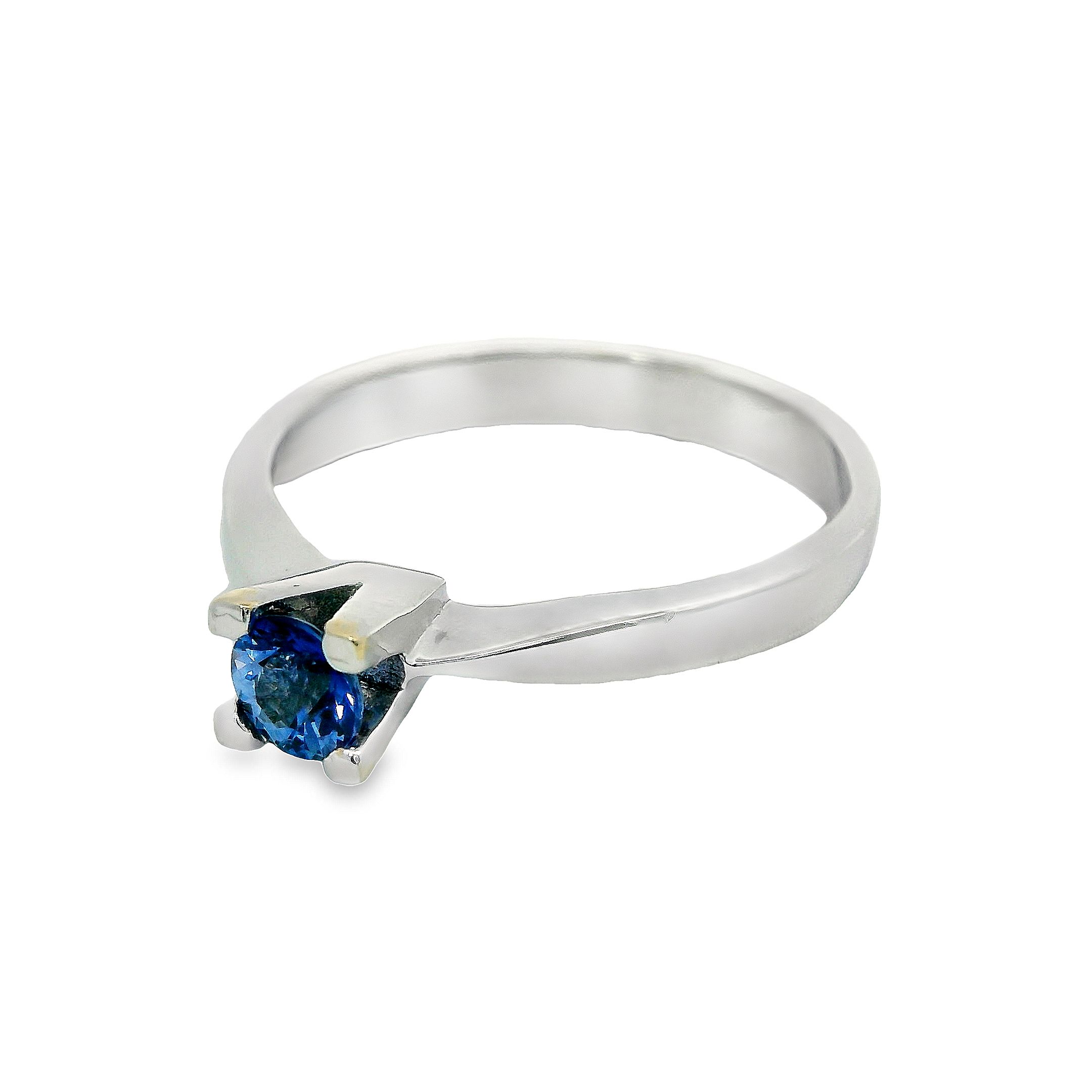 Deze ring van Louis Bros is vervaardigd uit 14 karaat witgoud (3.gr.) en is gezet met 1 saffier met een totaalgewicht van 0.28ct. De ring heeft een diameter van 4 mm, minimale breedte van 2.5 mm. en een hoogte van 6 mm. In het hart van de ring schittert een betoverende saffier, met zijn diepblauwe kleur die doet denken aan de eindeloze diepten van de oceaan. Deze koninklijke edelsteen straalt een aura van mysterie en schoonheid uit, en trekt onmiddellijk de aandacht naar zich toe met zijn unieke schittering.