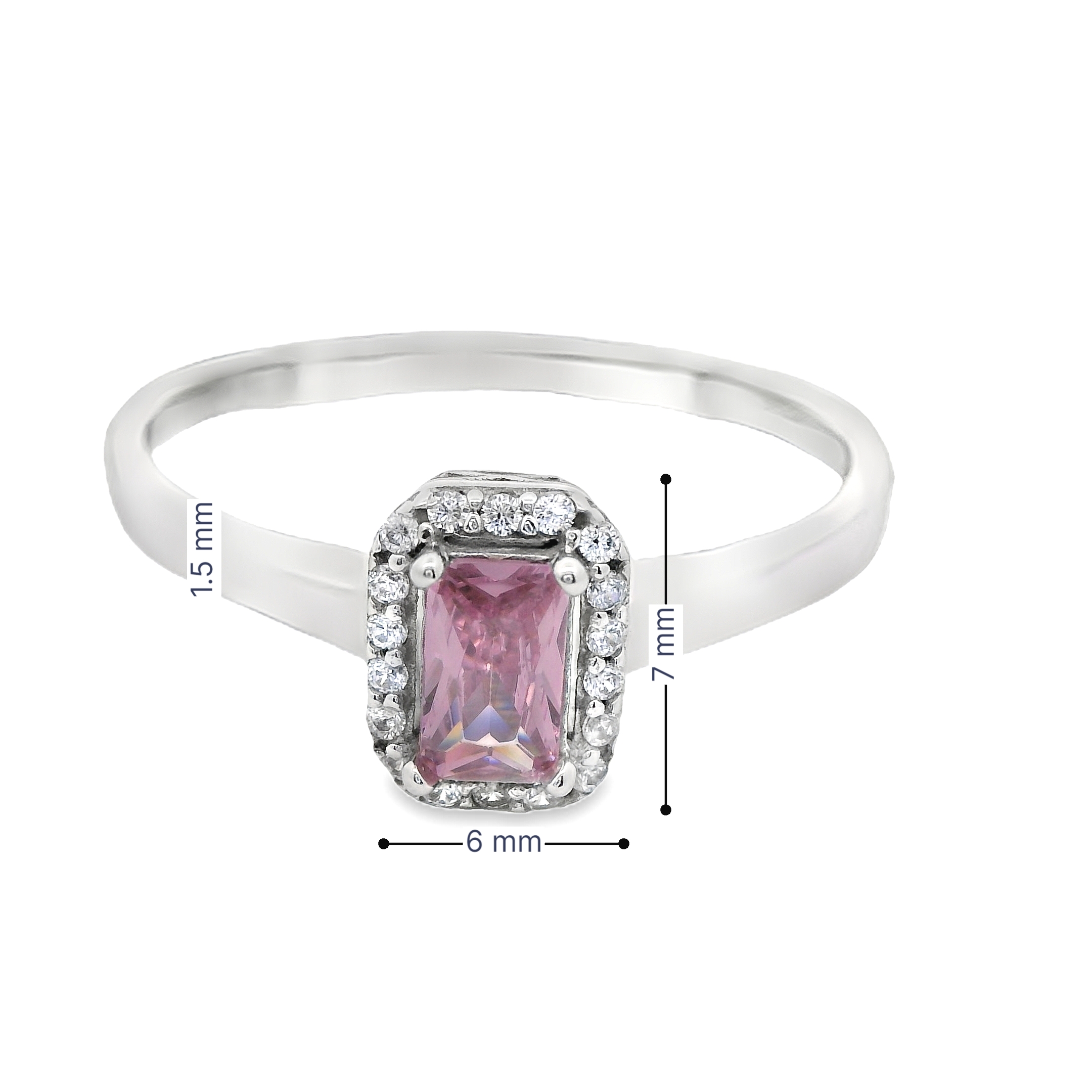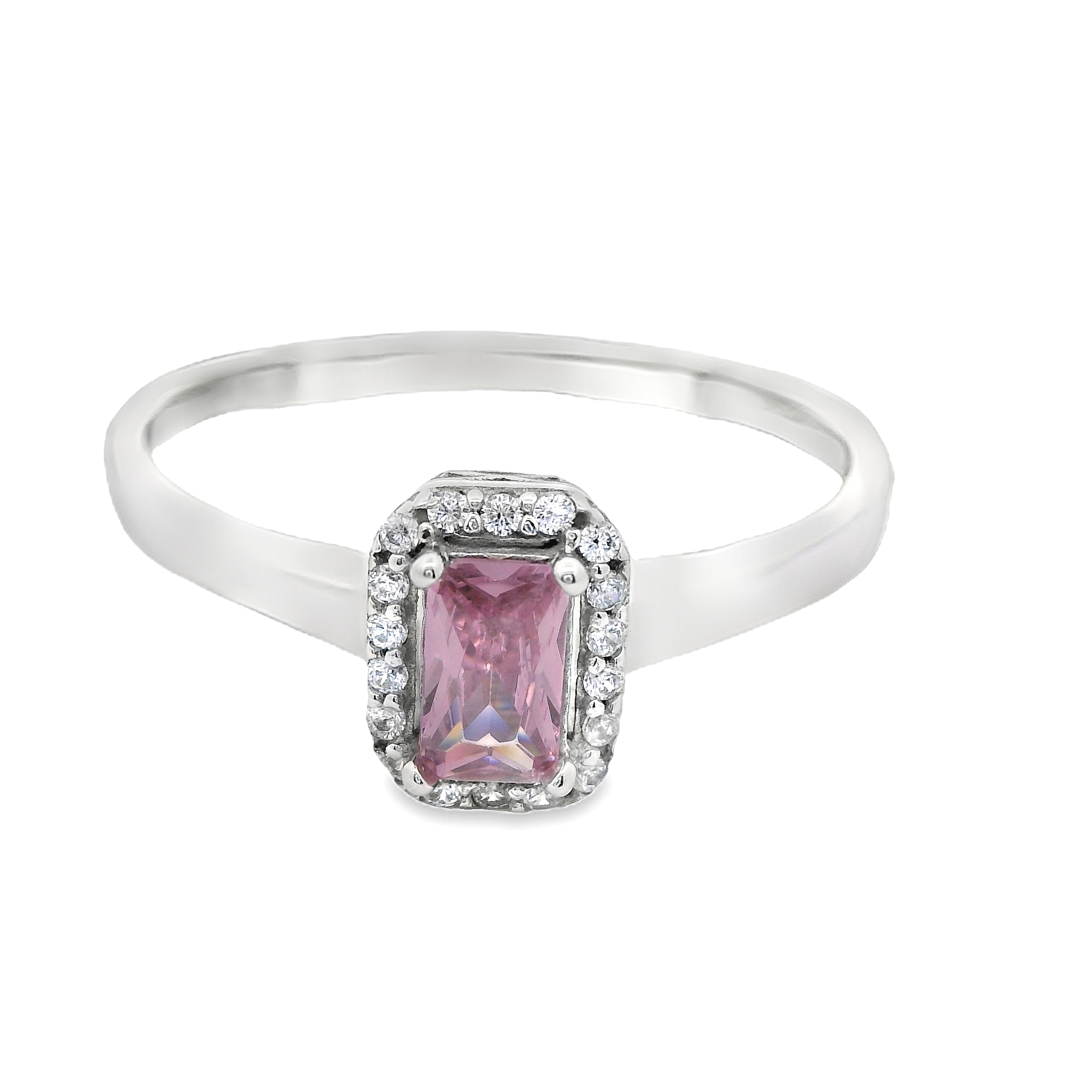 Deze ring met een roze zirkonia in het midden en omringd door witte zirkonia straalt verfijning en romantiek uit. De zachtroze tint van de centrale zirkonia vormt een prachtig contrast met de sprankelende witte zirkonia's eromheen, terwijl het witgoud de elegante uitstraling van de ring versterkt. Dit stijlvolle sieraad is perfect voor wie houdt van een subtiele maar opvallende combinatie van kleuren, en is ideaal voor zowel speciale gelegenheden als dagelijks gebruik.