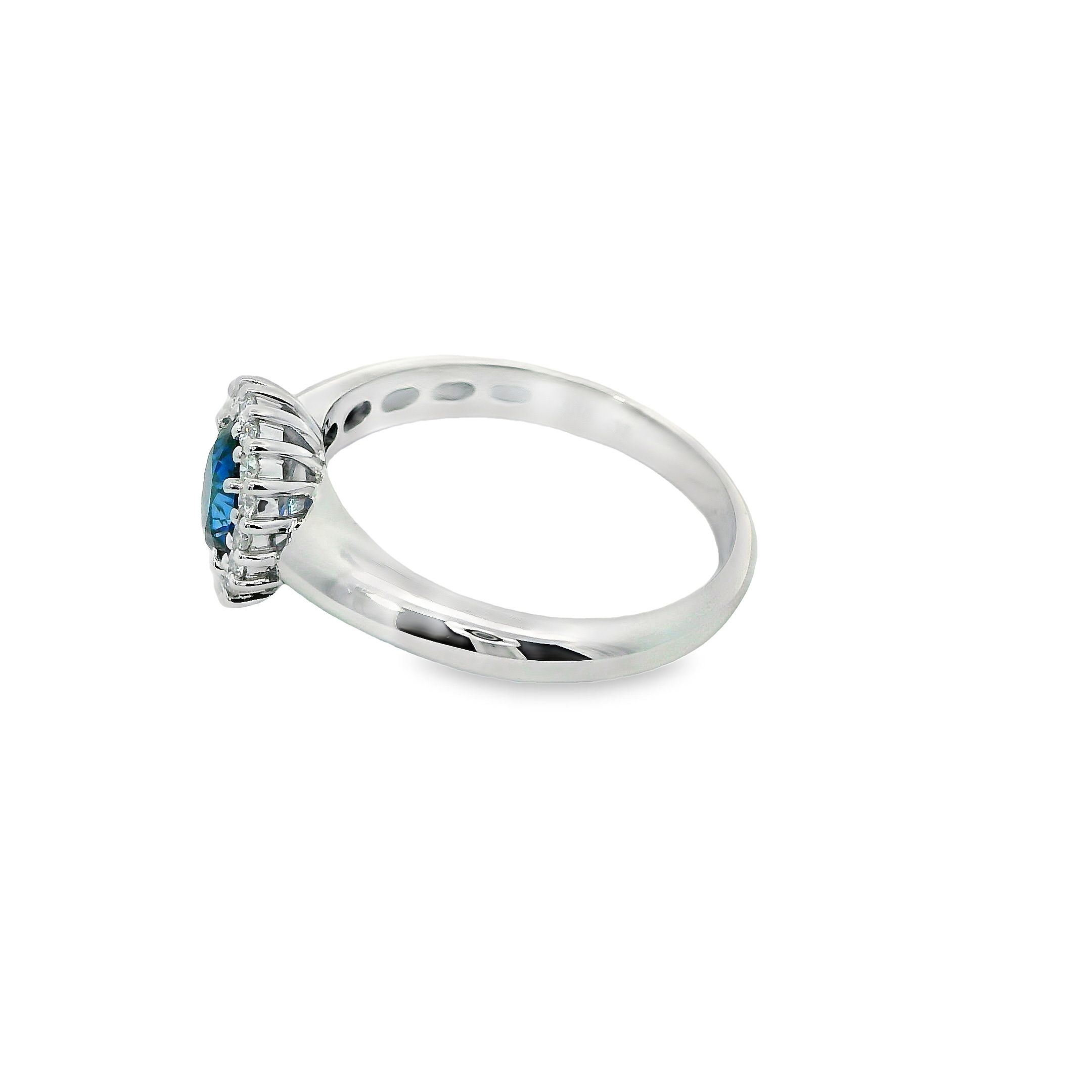 Deze ring van Louis Bros is vervaardigd uit 14 karaat witgoud (3.54 gr.) en is gezet met 18 briljant geslepen diamanten met een totaalgewicht van 0.15ct en 1 saffier 0.79ct. De ring heeft een diameter van 9. mm, minimale breedte van 3.5 mm. en een hoogte van 4.mm. In het hart van deze betoverende witgouden ring schittert een majestueuze blauwe saffier als een fonkelende ster aan de nachtelijke hemel. Met zijn diepe, serene kleur straalt de saffier rust en harmonie uit, terwijl het een gevoel van mysterie en verfijning oproept. Deze ring is niet alleen een symbool van tijdloze schoonheid en elegantie, maar ook van liefde en verbondenheid. Het is een belofte van eeuwige liefde en een herinnering aan de kostbaarheid van elk moment samen. Met zijn verfijnde design en schitterende edelstenen is deze witgouden ring met een blauwe saffier en diamanten een waar kunstwerk dat de ziel betovert en de harten van anderen steelt.