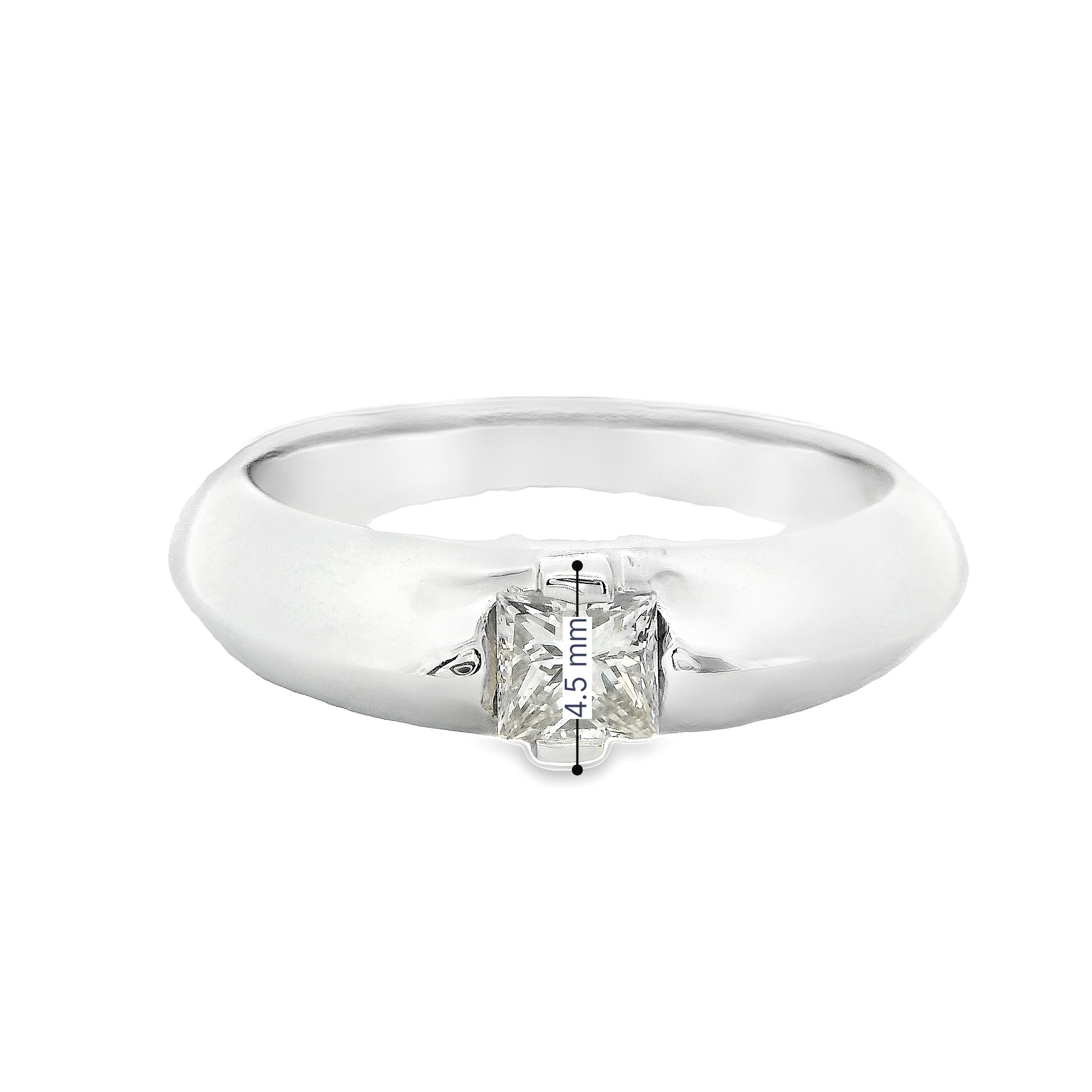 Deze ring van Louis Bros is vervaardigd uit 18 karaat witgoud (4.92 gr.) en is gezet met 1 princess geslepen diamanten met een totaalgewicht van 0.27ct. De ring heeft een breedte van 4.5 mm. en een dikte van 3.5 mm. Deze ring bestaat uit onze lijn van exclusieve modellen sieraden met prachtige designs van hoge kwaliteit.