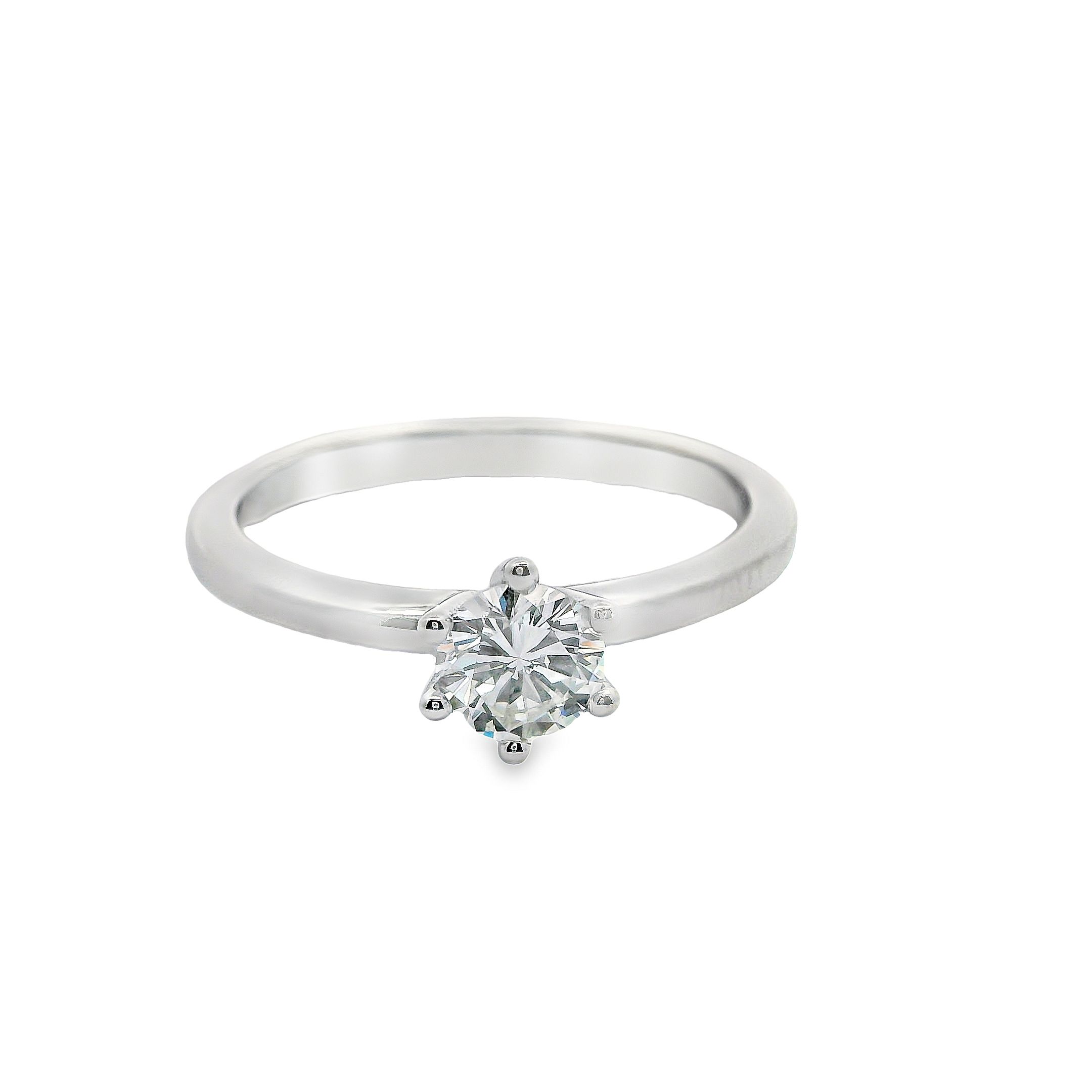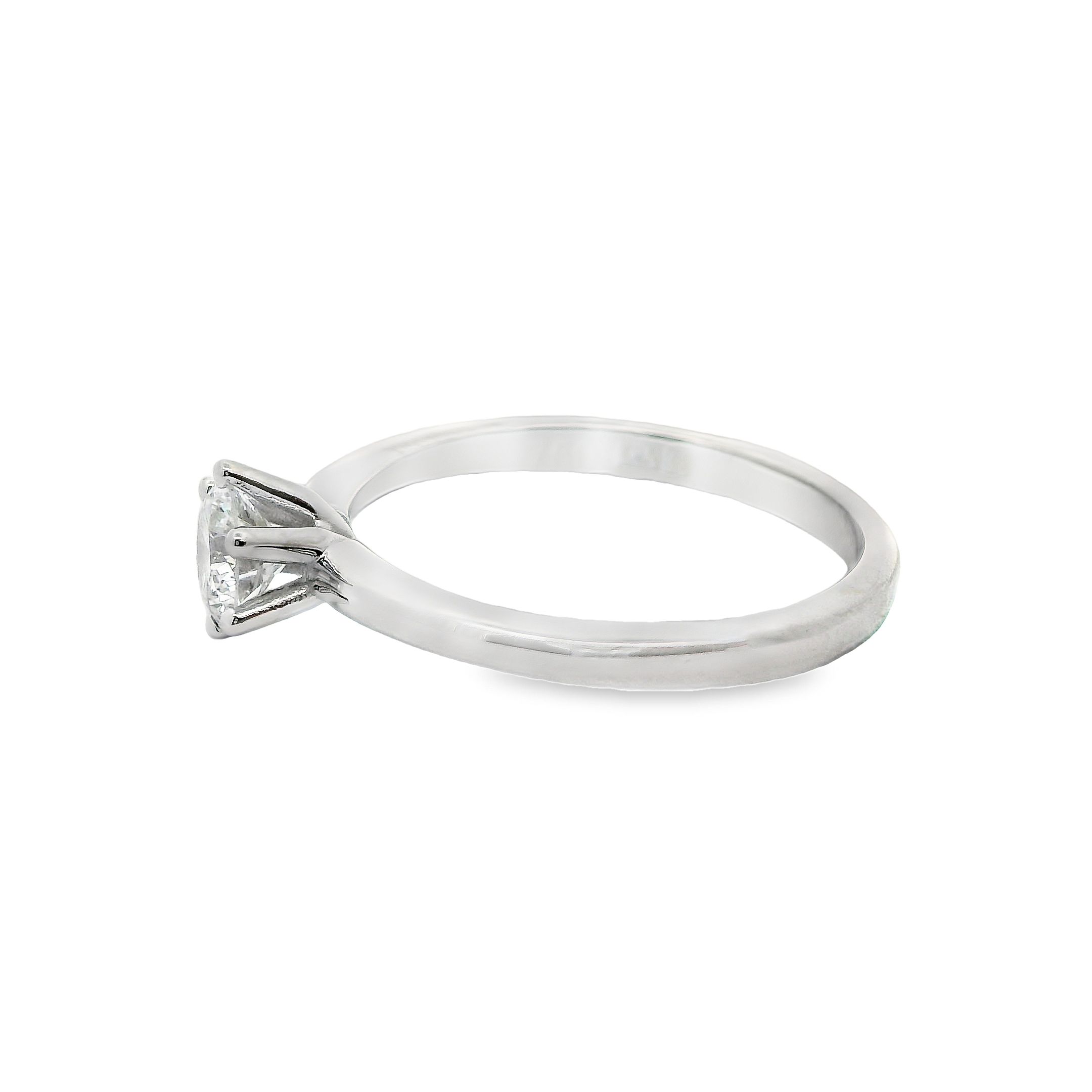 Deze ring van Louis Bros is vervaardigd uit 18 karaat witgoud (3.61 gr.) en is gezet met 1 briljant geslepen diamanten met een totaalgewicht van 0.50ct. De ring heeft een diameter van 5 mm, minimale breedte van 2 mm. en een hoogte van 5 mm. Deze ring straalt klassieke elegantie uit. Het witgoud geeft de ring een tijdloze en verfijnde uitstraling, terwijl het diamantje in het midden een subtiel maar stralend accent vormt. Deze klassieke en elegante ring is perfect voor iedereen die houdt van een tijdloos en ingetogen sieraad. Met deze ring om je vinger voel je je gegarandeerd stijlvol en chic!