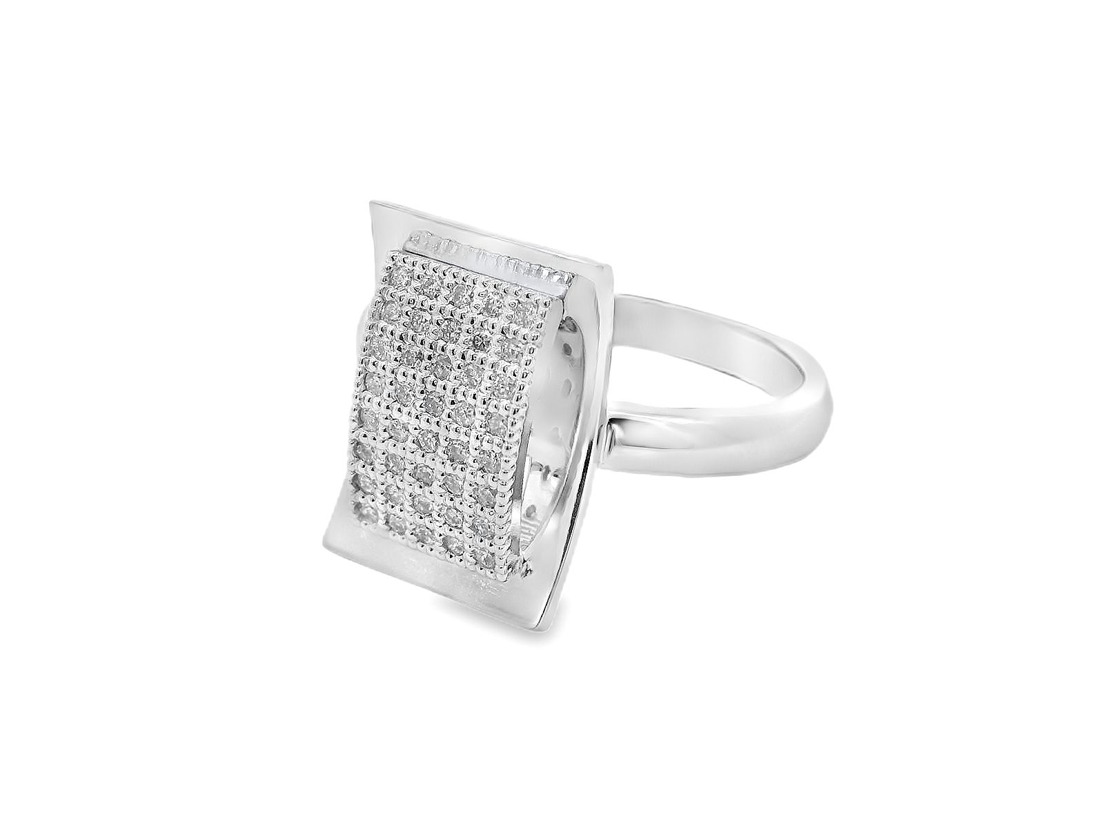 Deze prachtige witgouden ring van 18 karaat is bezet met een schitterende diamant en heeft een uniek design. De ring is perfect voor dagelijks of speciale gelegenheden en voegt een vleugje elegantie toe aan elke outfit. Draag deze ring alleen of combineer hem met andere sieraden voor een trendy look. Gegarandeerd een eyecatcher!