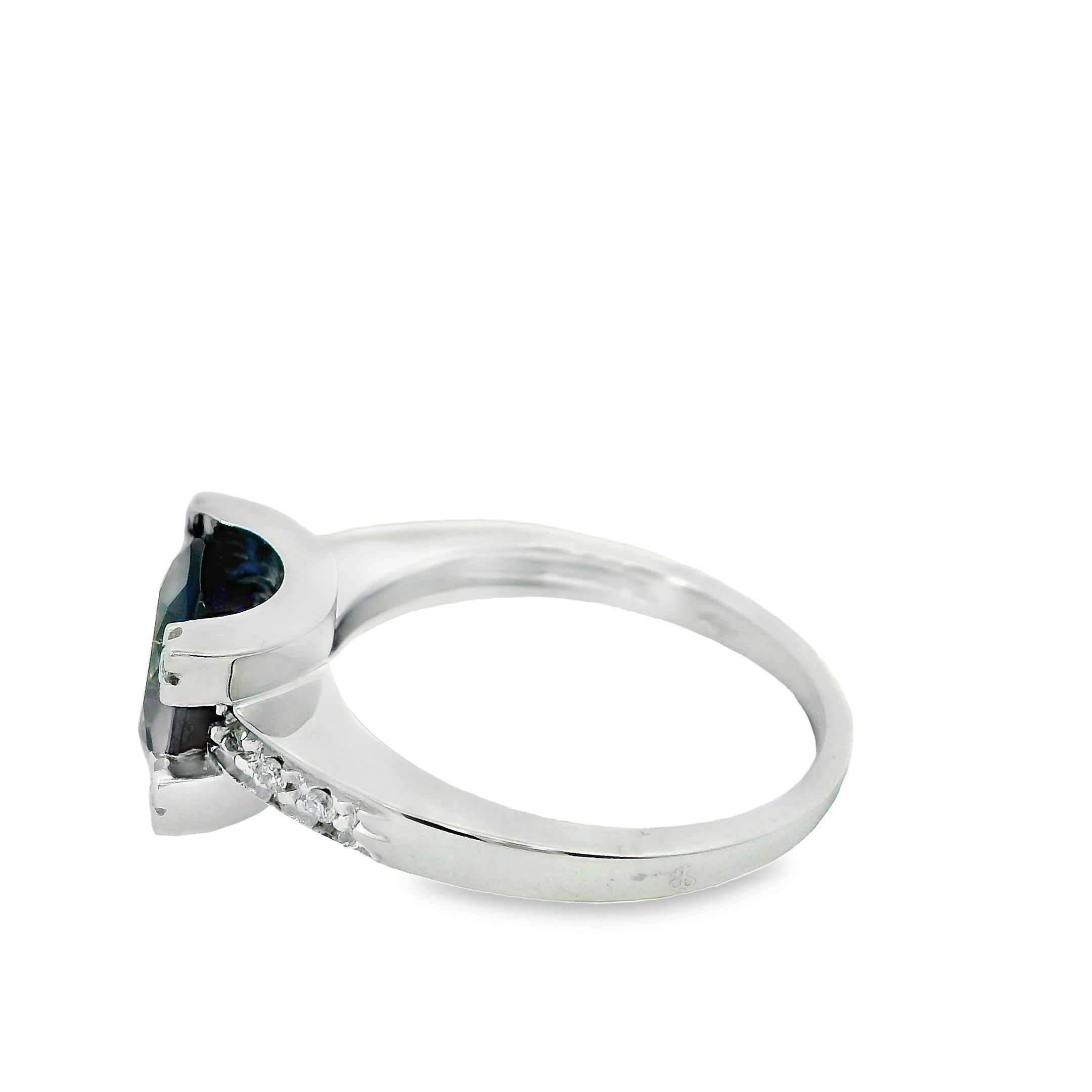 Deze ring van Louis Bros is vervaardigd uit 18 karaat witgoud (5.40 gr.) en is gezet met 10 briljant geslepen diamanten met een totaalgewicht van 0.10ct en 1 saffier 2.00ct. De ring heeft een diameter van 8 mm, minimale breedte van 2.5 mm. en een hoogte van 6 mm. In het hart van deze betoverende witgouden ring schittert een majestueuze blauwe saffier als een fonkelende ster aan de nachtelijke hemel. Met zijn diepe, serene kleur straalt de saffier rust en harmonie uit, terwijl het een gevoel van mysterie en verfijning oproept. Deze ring is niet alleen een symbool van tijdloze schoonheid en elegantie, maar ook van liefde en verbondenheid. Het is een belofte van eeuwige liefde en een herinnering aan de kostbaarheid van elk moment samen. Met zijn verfijnde design en schitterende edelstenen is deze witgouden ring met een blauwe saffier en diamanten een waar kunstwerk dat de ziel betovert en de harten van anderen steelt.