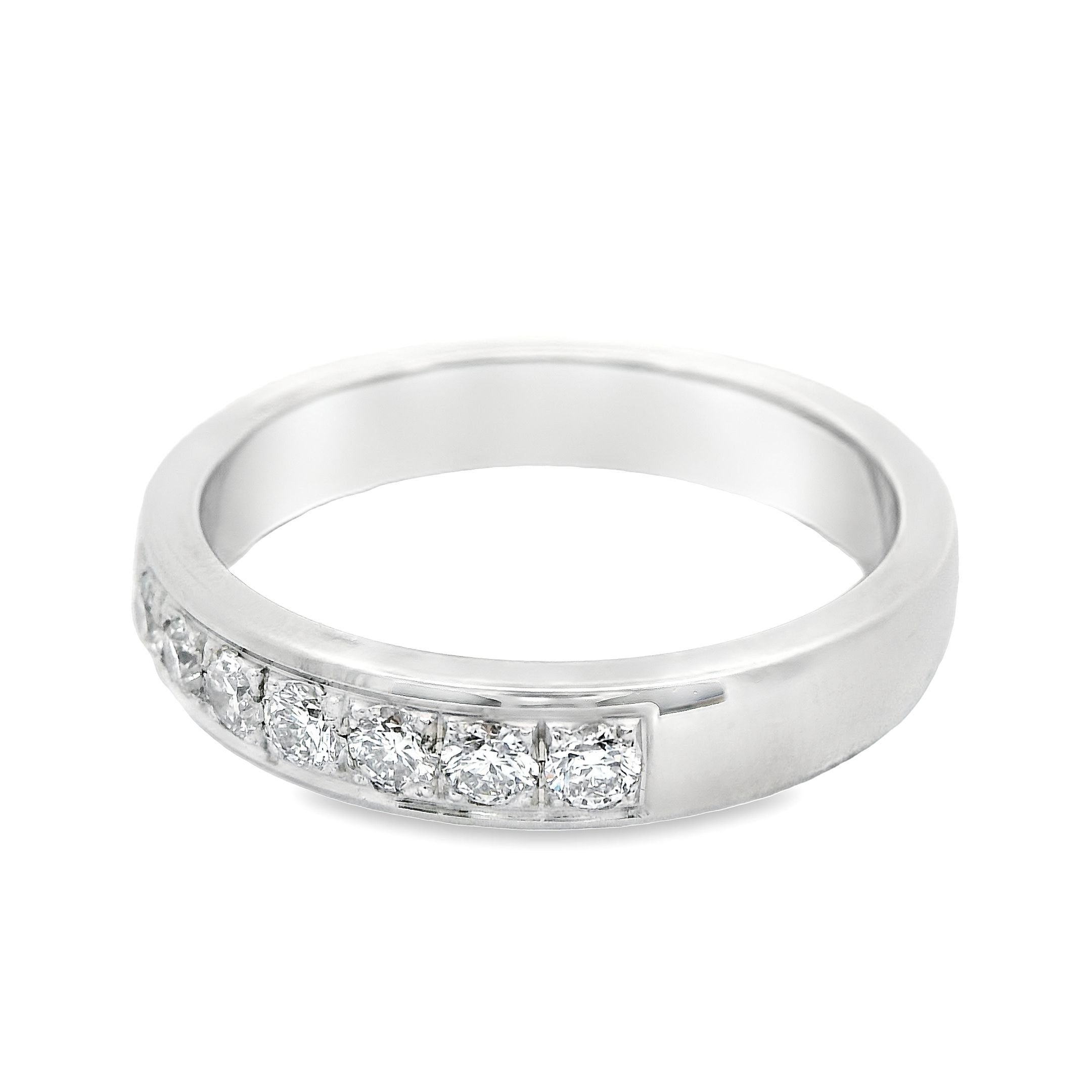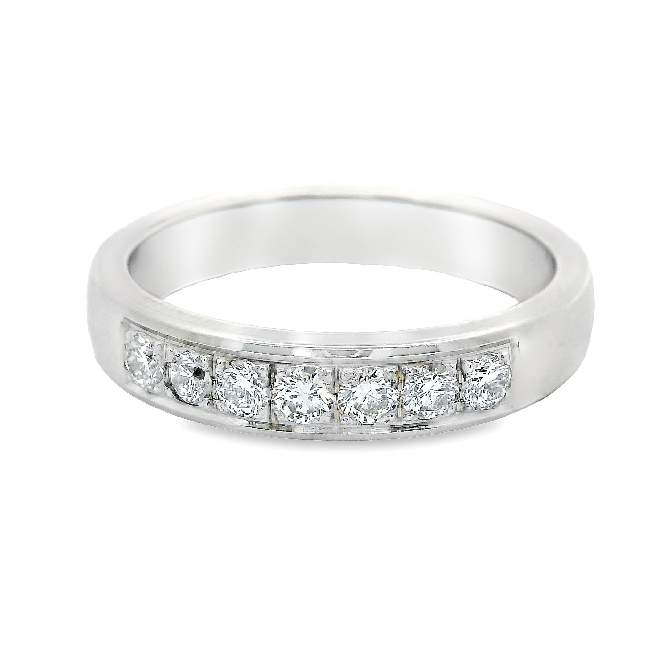 Deze ring van Louis Bros is vervaardigd uit 14 karaat witgoud (5.45 gr.) en is gezet met 7 briljant geslepen diamanten met een totaalgewicht van 0.35 ct. De ring heeft een breedte van 4 mm en dikte van 2.5 mm. Met deze ring om je vinger ben jij het stralende middelpunt bij elke gelegenheid. Deze ring bestaat uit onze lijn van exclusieve modellen sieraden met prachtige designs en van hoge kwaliteit .