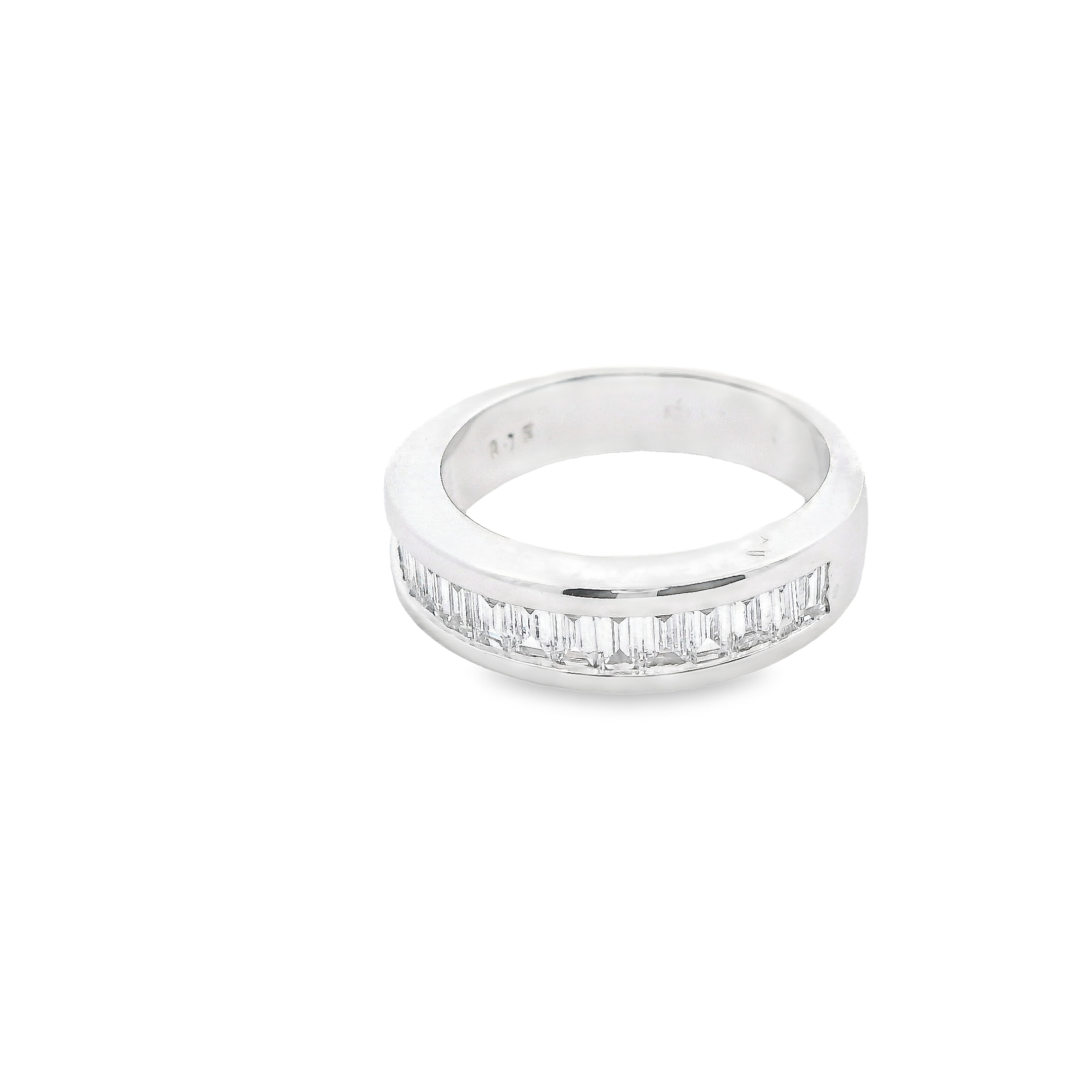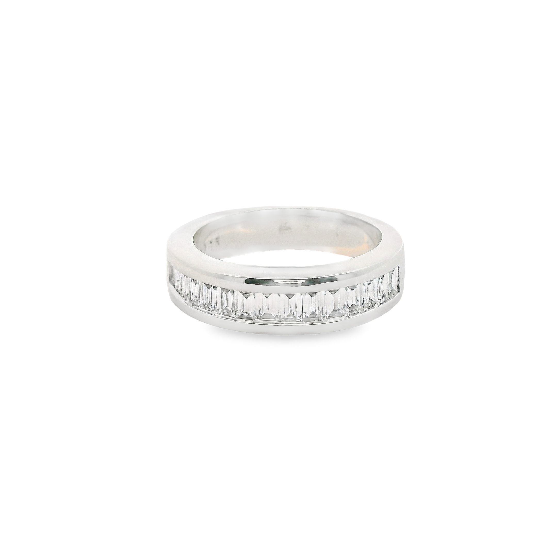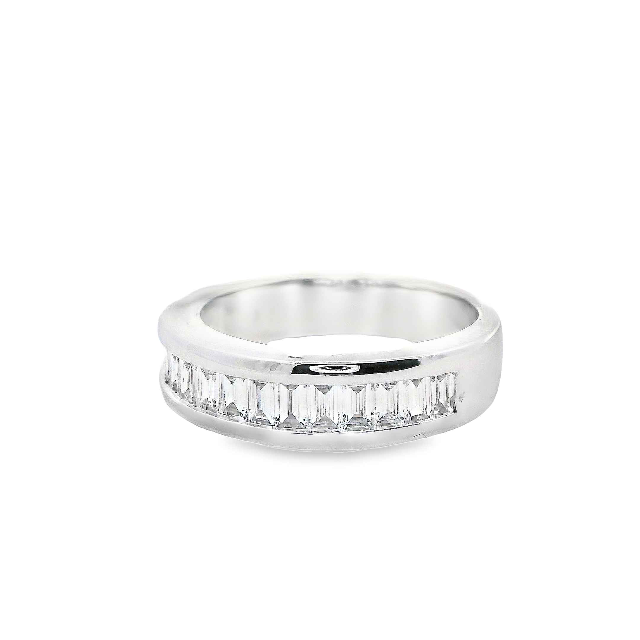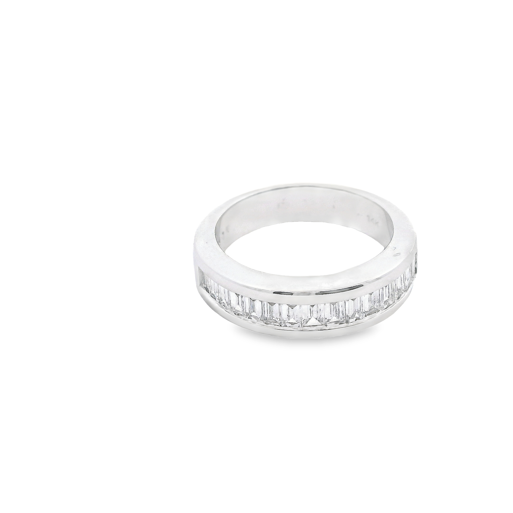 Deze exclusieve ring van Louis Bros is vervaardigd uit 14 karaat witgoud (5.21 gr.) en is gezet met 15 baguette geslepen diamanten met een totaalgewicht van 0.50 ct. De ring heeft een breedte van 5 mm en dikte van 3 mm. Met deze ring om je vinger ben jij het stralende middelpunt bij elke gelegenheid. Deze ring bestaat uit onze lijn van exclusieve modellen sieraden met prachtige designs en van hoge kwaliteit.