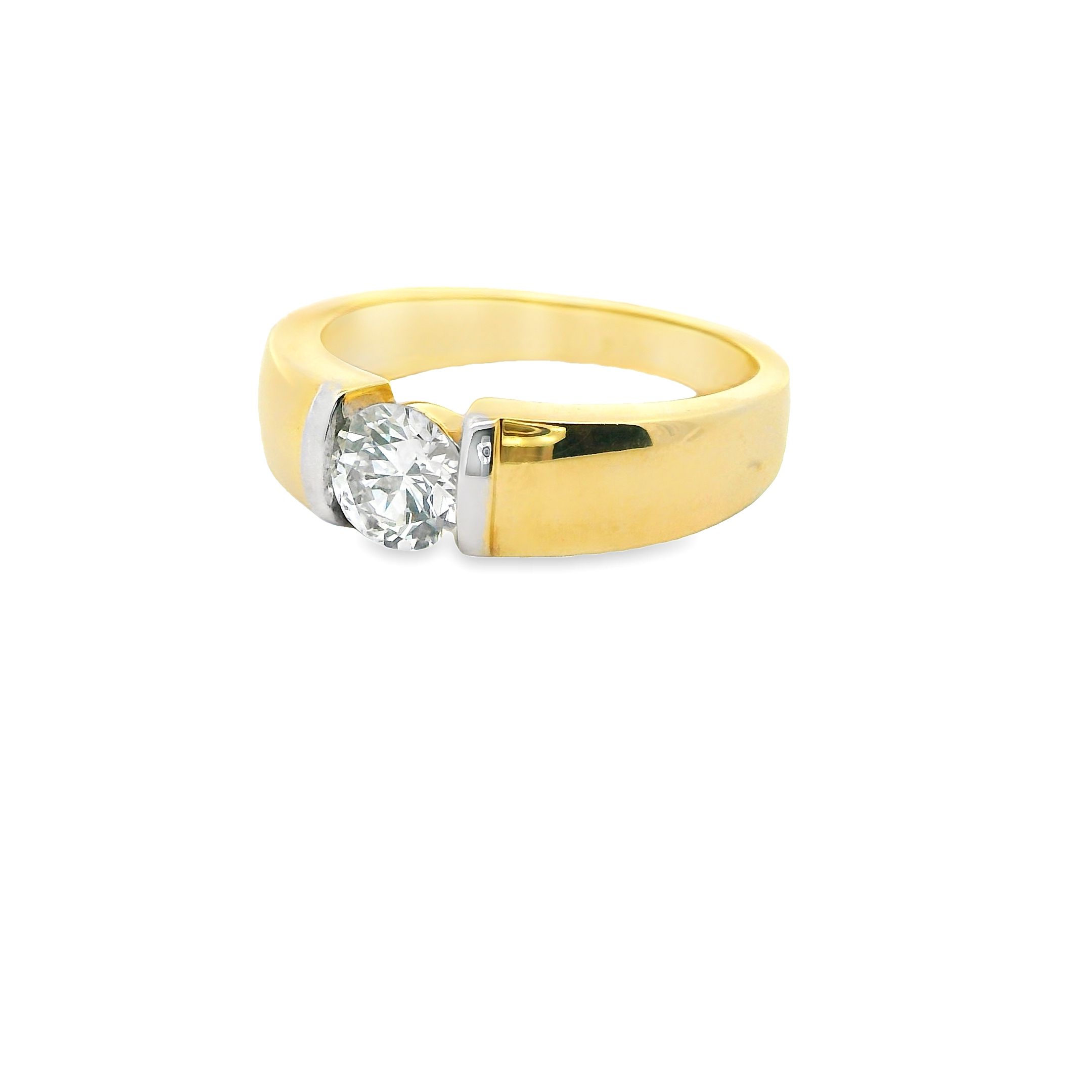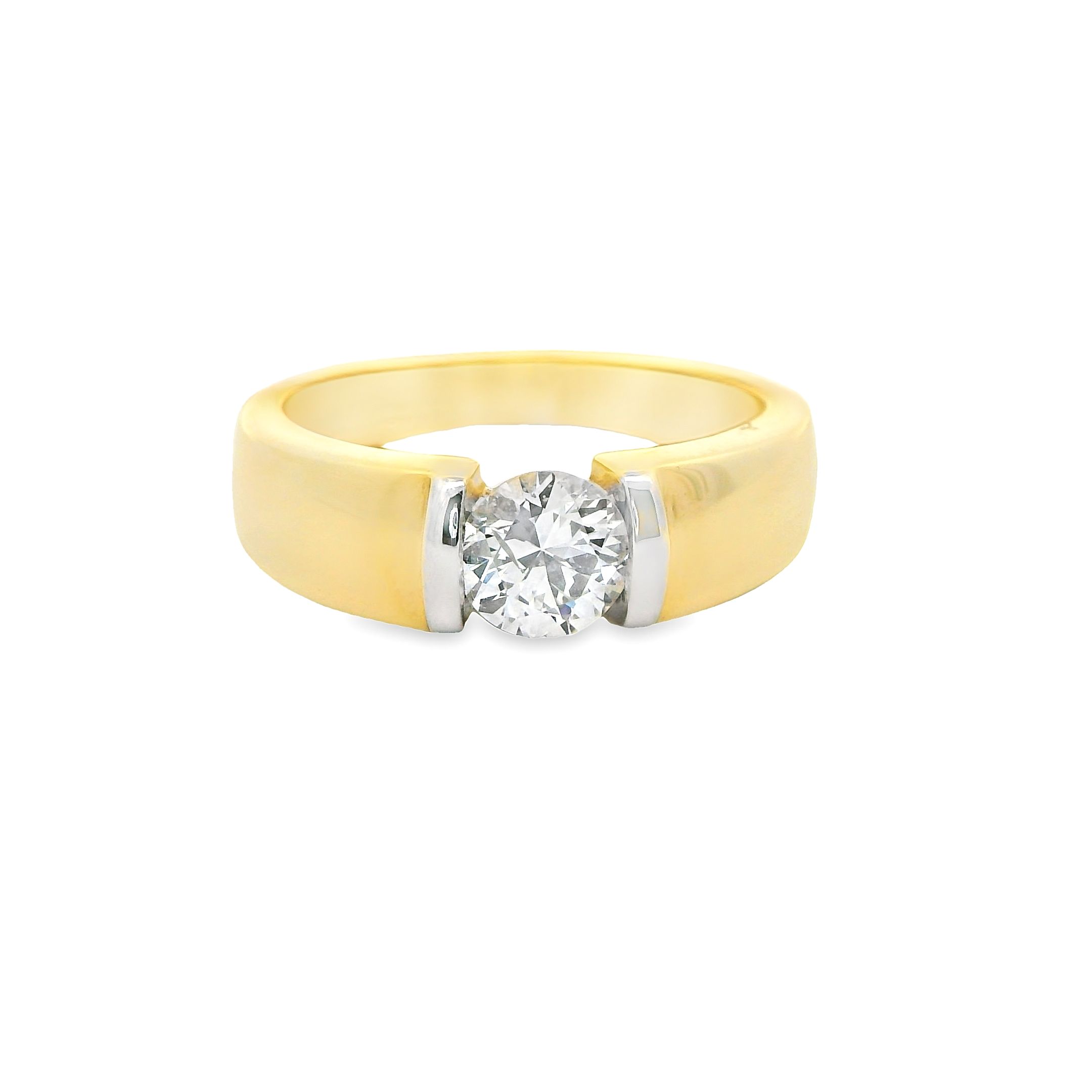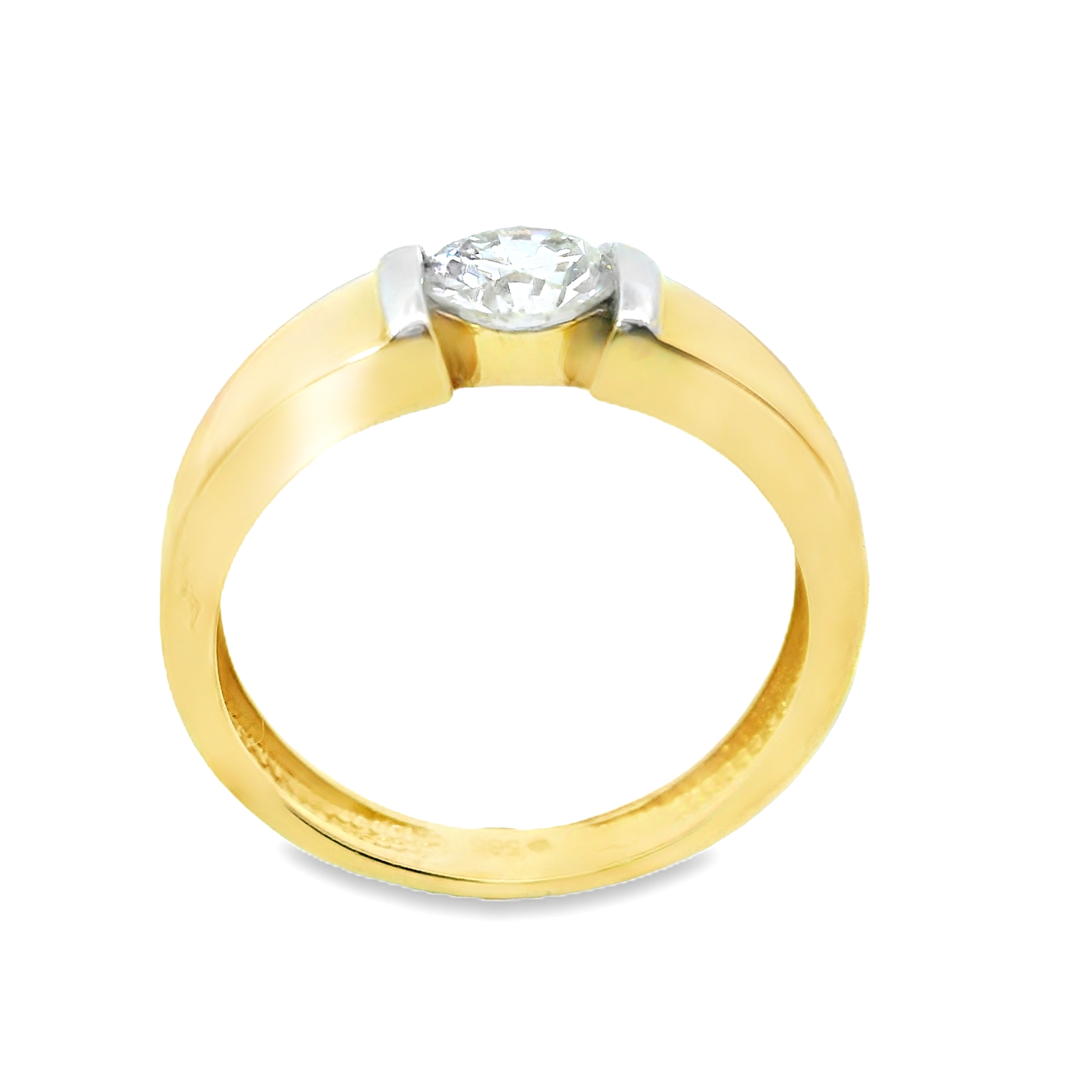 Deze exclusieve ring van Louis Bros is vervaardigd uit 14 karaat bicolor (3.14 gr.) en is gezet met 1 briljant geslepen diamanten met een totaalgewicht van 0.60 ct. De ring heeft een breedte van 5.12 mm en dikte van 2.5 mm. Met deze ring om je vinger ben jij het stralende middelpunt bij elke gelegenheid. Deze ring bestaat uit onze lijn van exclusieve modellen sieraden met prachtige designs en van hoge kwaliteit .