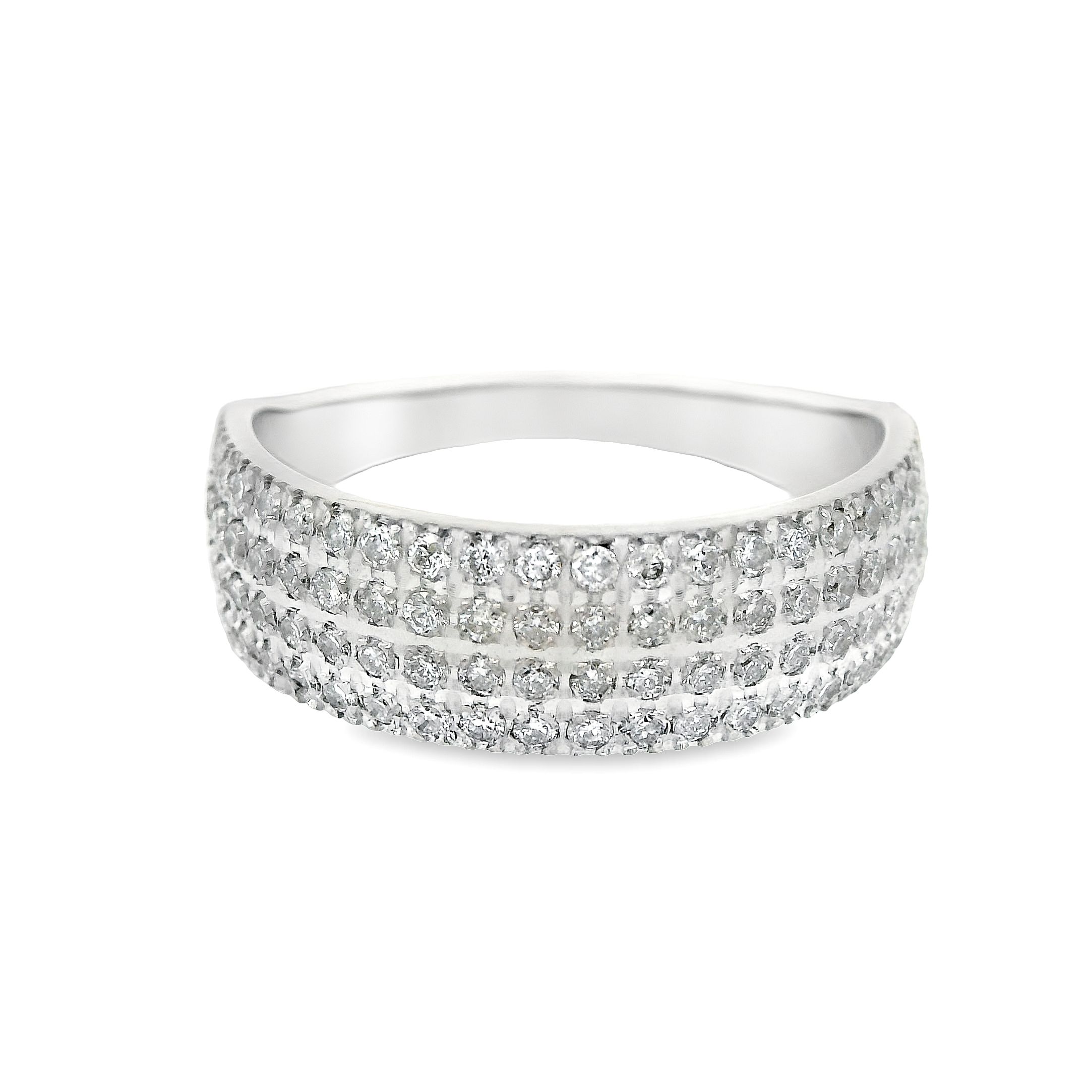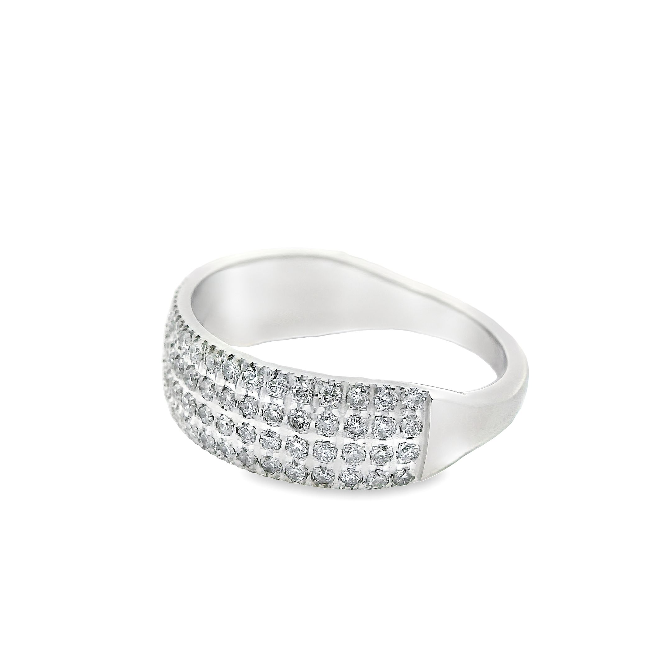 Deze ring van Louis Bros is vervaardigd uit 14 karaat witgoud (3.89 gr.) en is gezet met 80 briljant geslepen diamanten met een totaalgewicht van 0.35 ct. De ring heeft een breedte van 6 mm en dikte van 1.3 mm. Met deze ring om je vinger ben jij het stralende middelpunt bij elke gelegenheid. Deze ring bestaat uit onze lijn van exclusieve modellen sieraden met prachtige designs en van hoge kwaliteit.