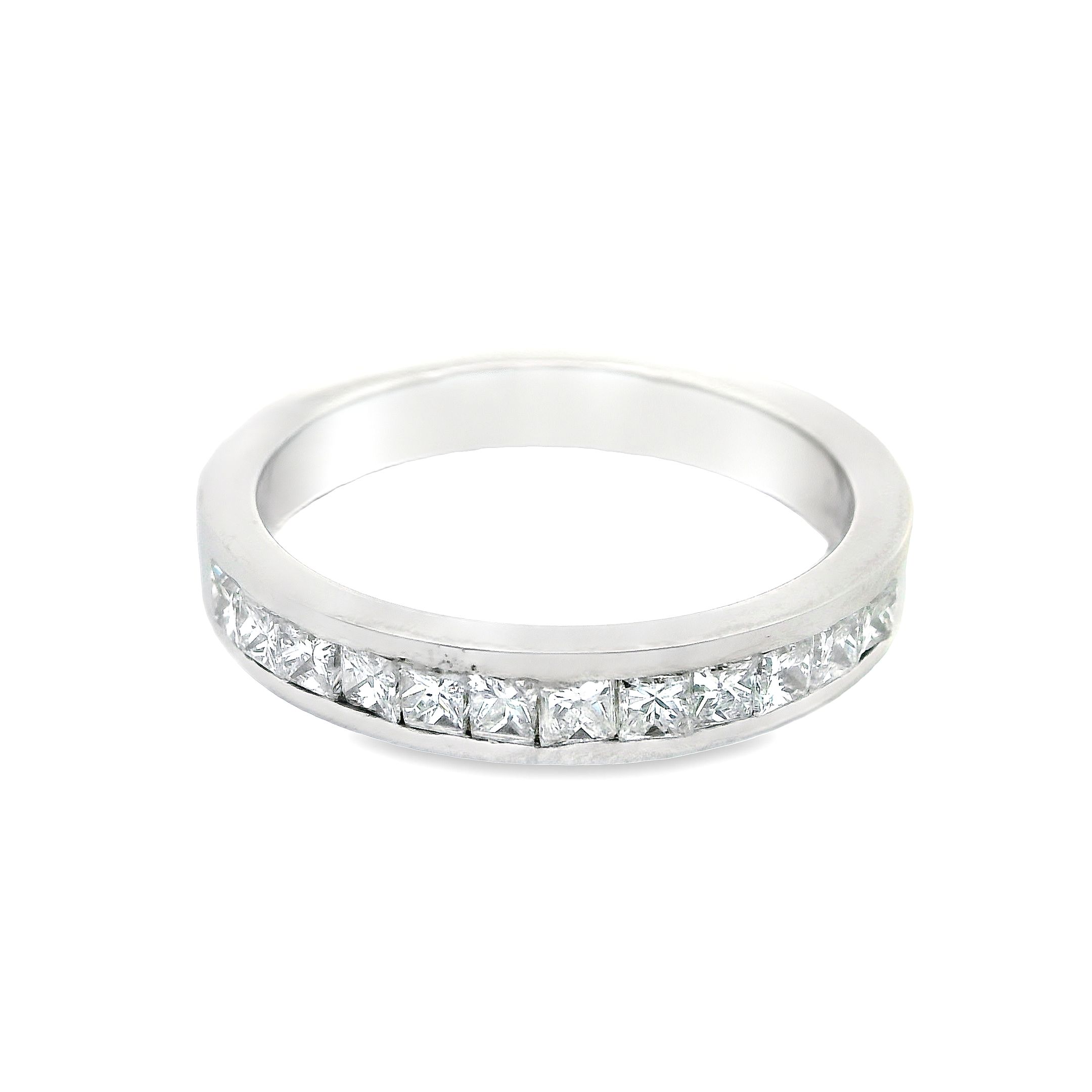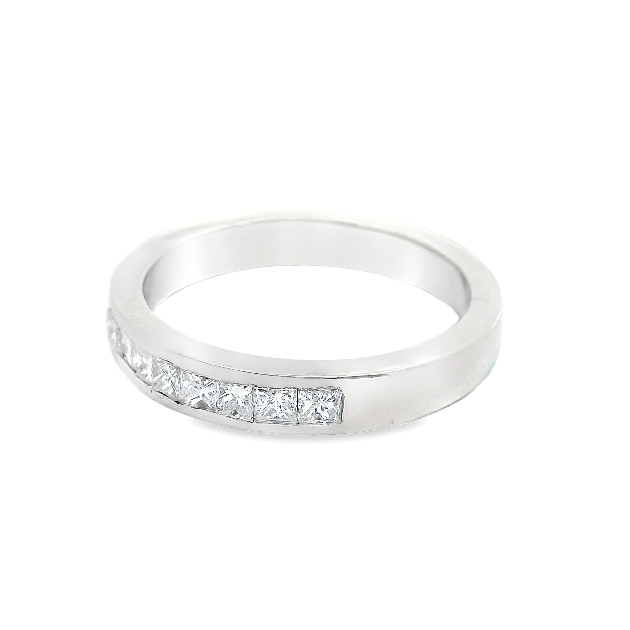 Deze ring van Louis Bros is vervaardigd uit 14 karaat witgoud (4.41 gr.) en is gezet met 12 princess geslepen diamanten met een totaalgewicht van 0.60 ct. De ring heeft een breedte van 3.5 mm en dikte van 2 mm. Met deze ring om je vinger ben jij het stralende middelpunt bij elke gelegenheid. Deze ring bestaat uit onze lijn van exclusieve modellen sieraden met prachtige designs en van hoge kwaliteit.