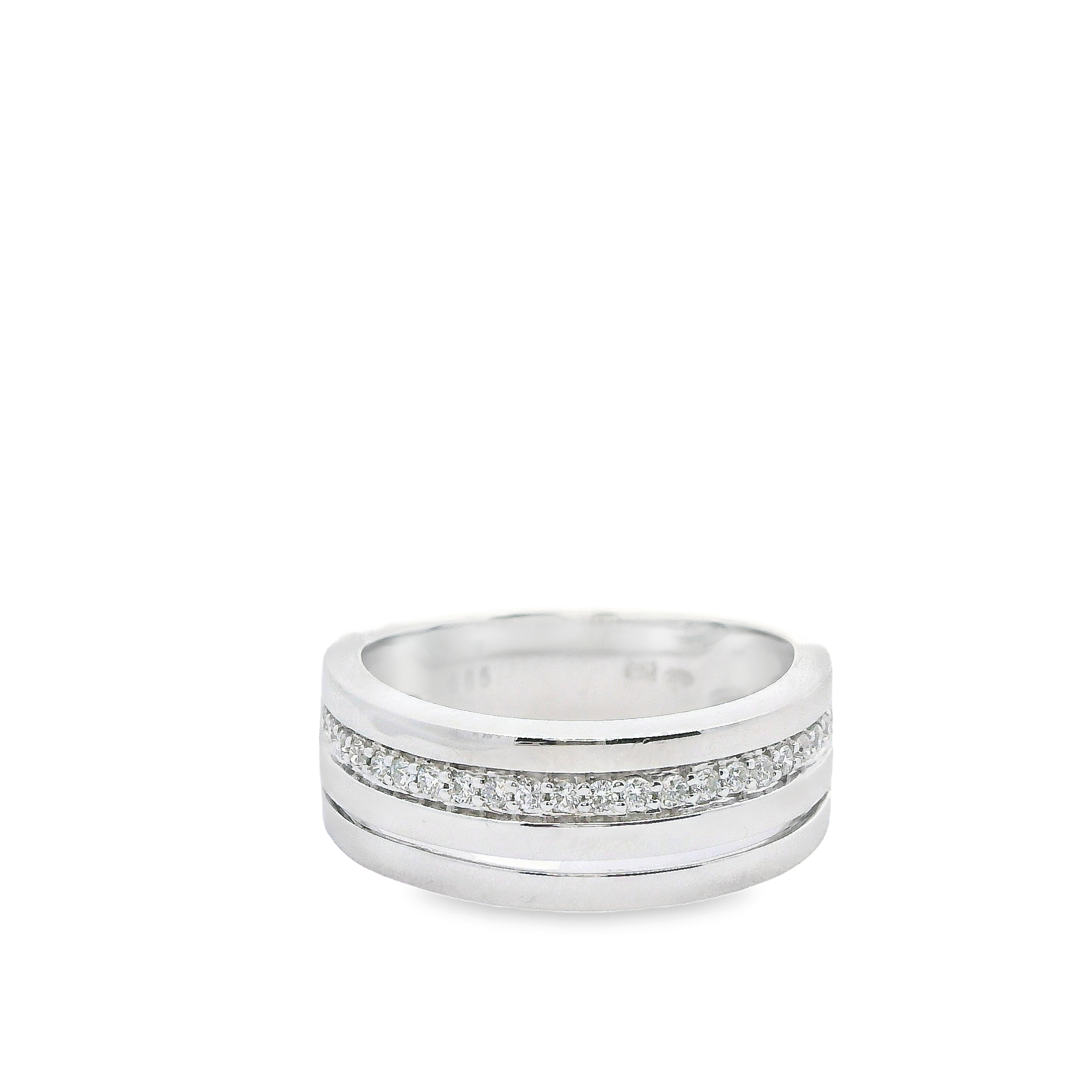 Deze ring van Louis Bros is vervaardigd uit 14 karaat witgoud (5.12 gr.) en is gezet met 22 briljant geslepen diamanten met een totaalgewicht van 0.20 ct. De ring heeft een breedte van 7 mm en dikte van 2.25 mm. Met deze ring om je vinger ben jij het stralende middelpunt bij elke gelegenheid. Deze ring bestaat uit onze lijn van exclusieve modellen sieraden met prachtige designs en van hoge kwaliteit.
