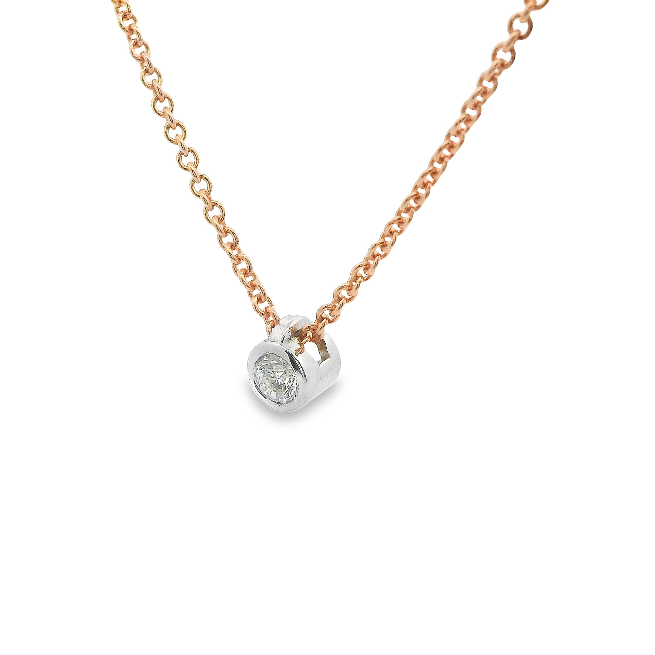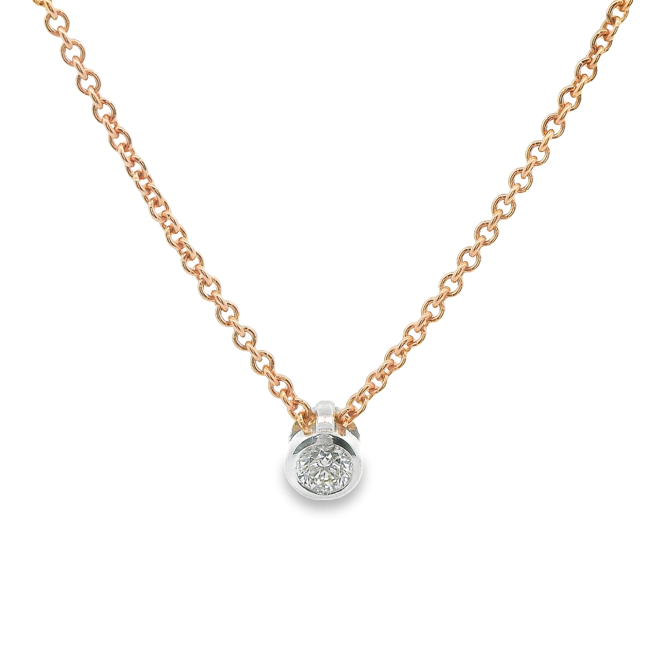Deze hanger (met collier) van Louis Bros is vervaardigd uit 14 karaat witgoud (2.70 gr.) en is gezet met 1 briljant geslepen diamanten met een totaalgewicht van 0.10 ct. De hanger heeft een diameter van 3 mm en een dikte van 2.5 mm.