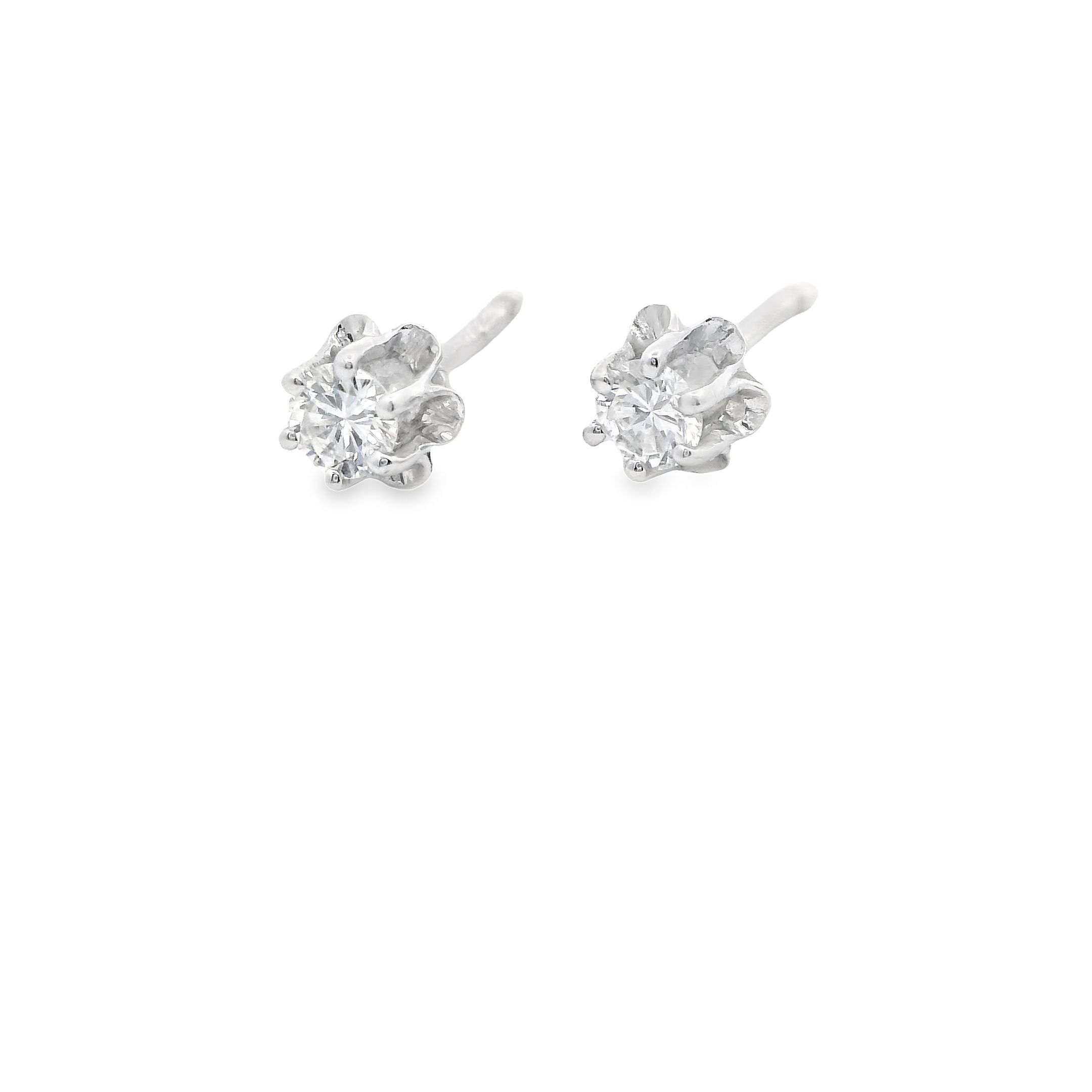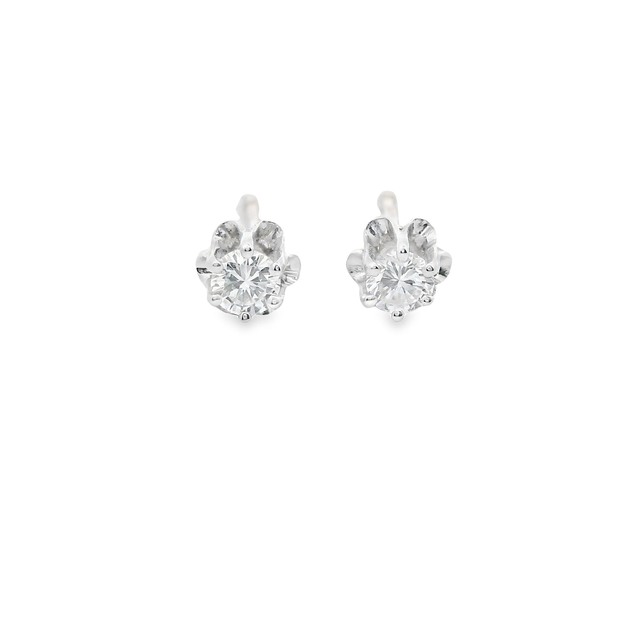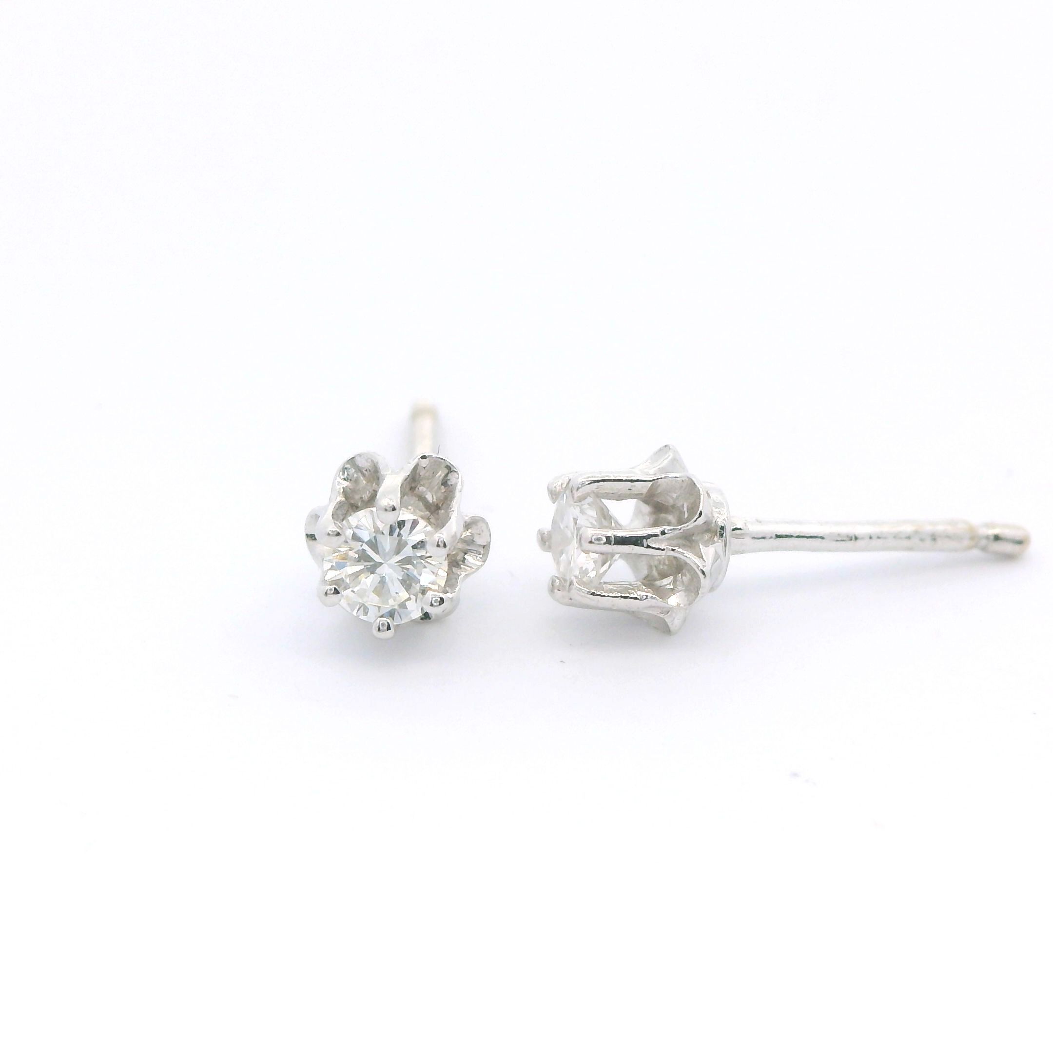Deze solitair oorstekers van Louis Bros zijn vervaardigd uit 14 karaat witgoud (1.16 g) en zijn gezet met 2 briljant geslepen diamanten met een totaalgewicht van 0.20 ct. De oorstekers hebben een diameter van 5 mm.