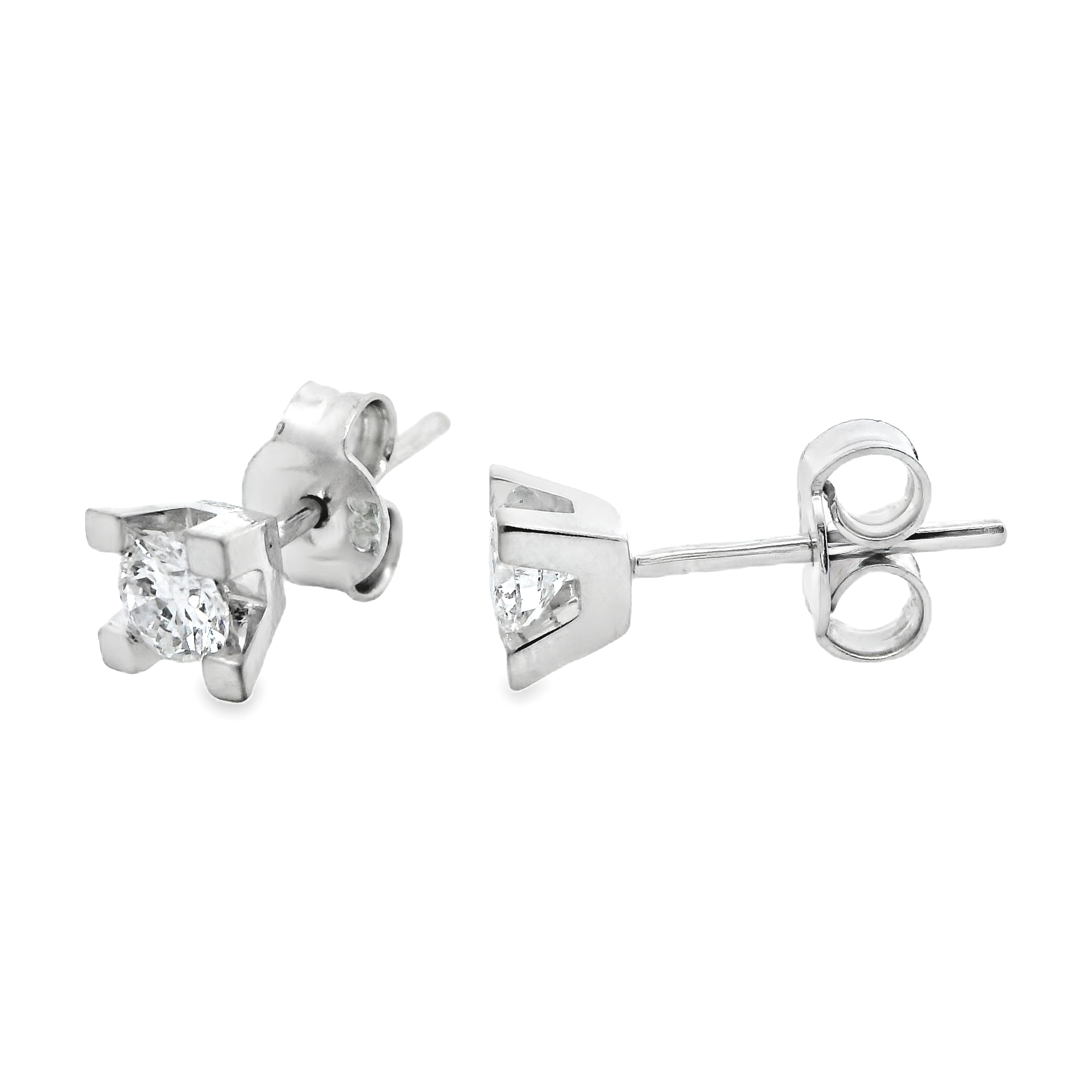 Deze solitair oorstekers van Louis Bros zijn vervaardigd uit 14 karaat witgoud (1.79 g) en zijn gezet met 2 briljant geslepen diamanten met een totaalgewicht van 0.50 ct. De oorstekers hebben een diameter van 5 mm en dikte van 3 mm.