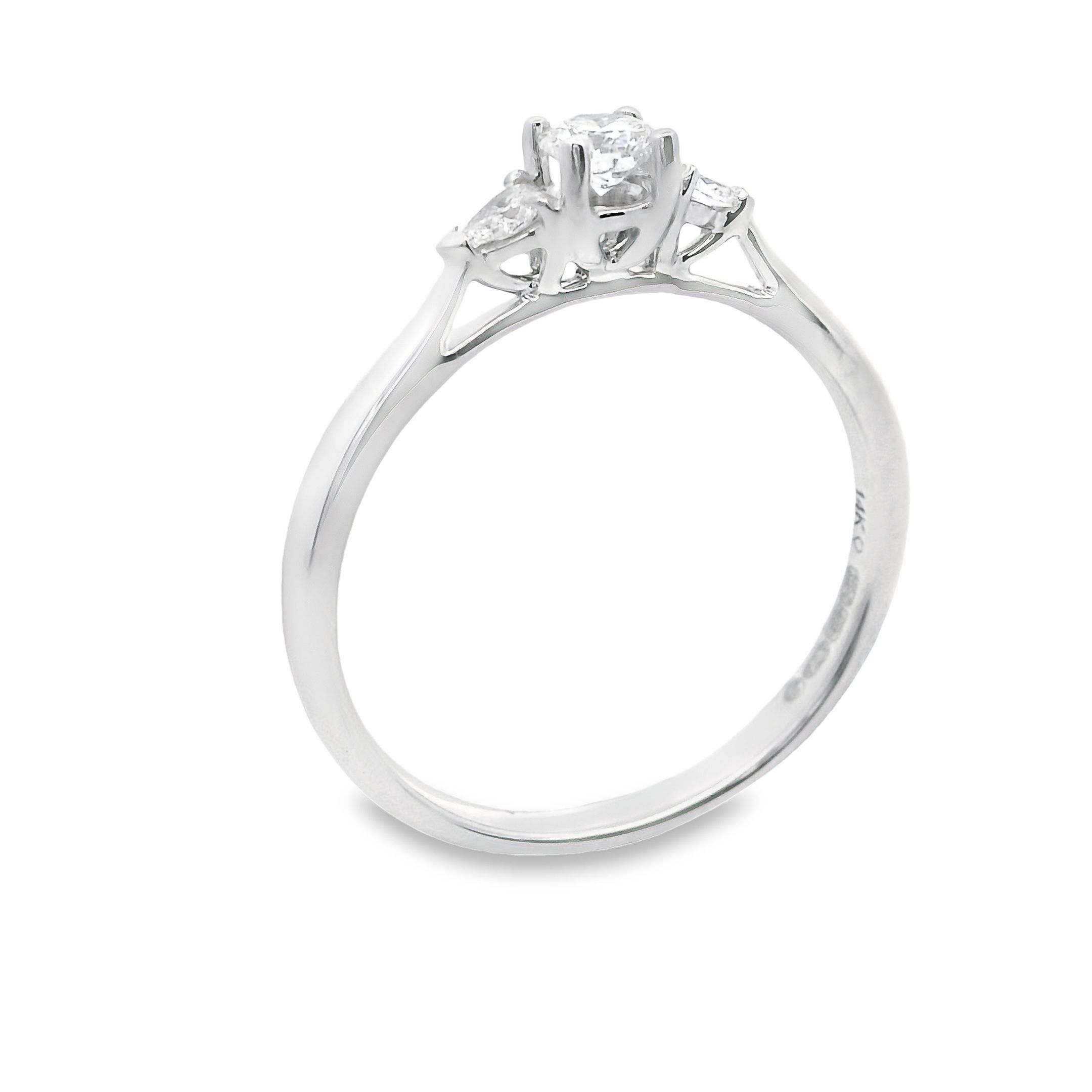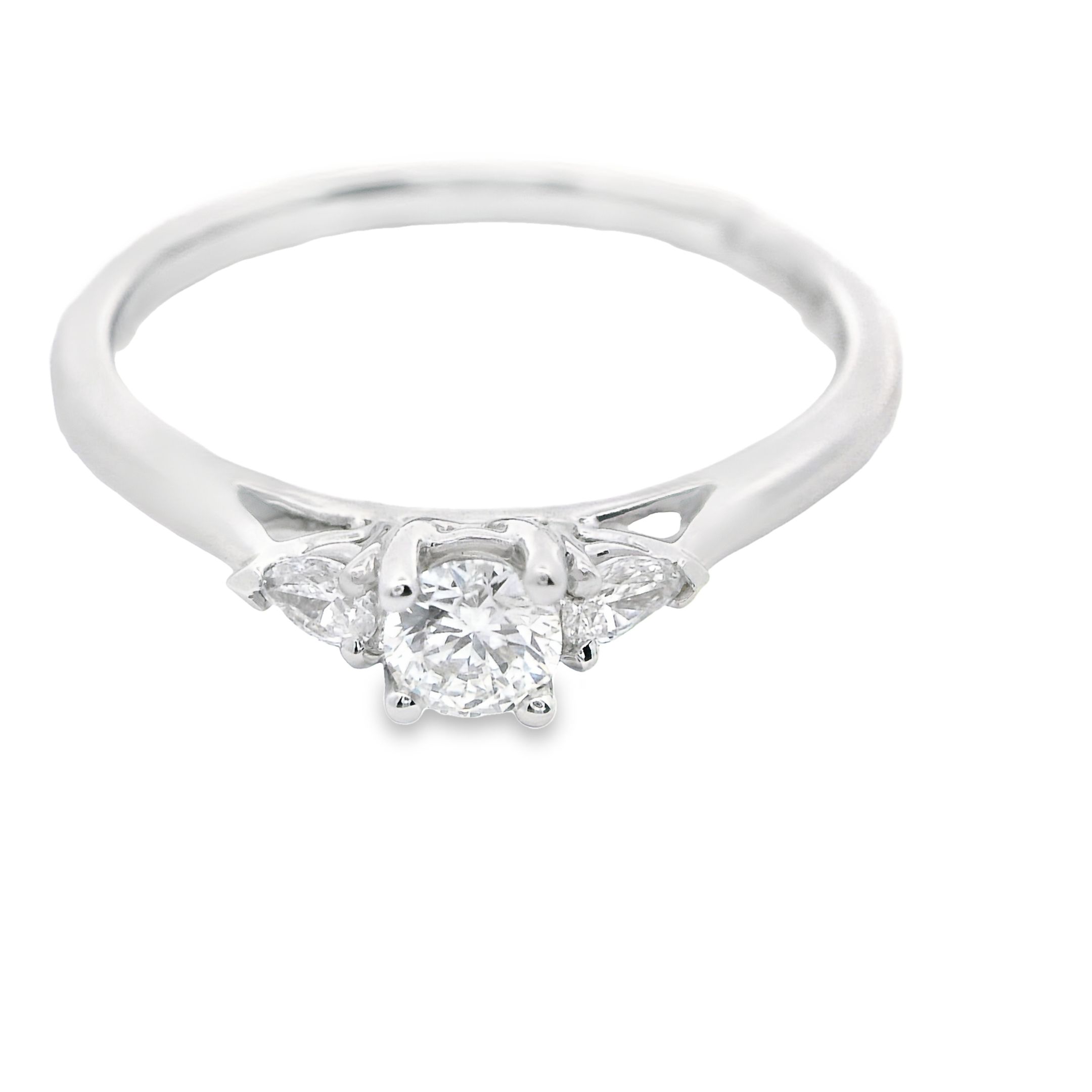 Deze exclusieve ring van Louis Bros is vervaardigd uit 14 karaat witgoud (2.38 gr.) en is gezet 2 pear 0.09ct en 1 briljant geslepen diamanten met een totaalgewicht van 0.18ct. De ring heeft een diameter van 3.5 mm, minimale breedte van 2 mm. en een hoogte van 5.5 mm.  witgouden ring met een steentje in het midden en twee pear diamanten op de zij kanten? Dat klinkt echt uniek en bijzonder! Deze aparte ring is een echte eyecatcher. Het sprankelende steentje in het midden trekt alle aandacht, terwijl de elegante pear diamanten aan de zijkanten een extra vleugje glamour toevoegen. Met deze ring laat je zeker een blijvende indruk achter. Een prachtige keuze voor iemand die graag iets speciaals wil dragen.