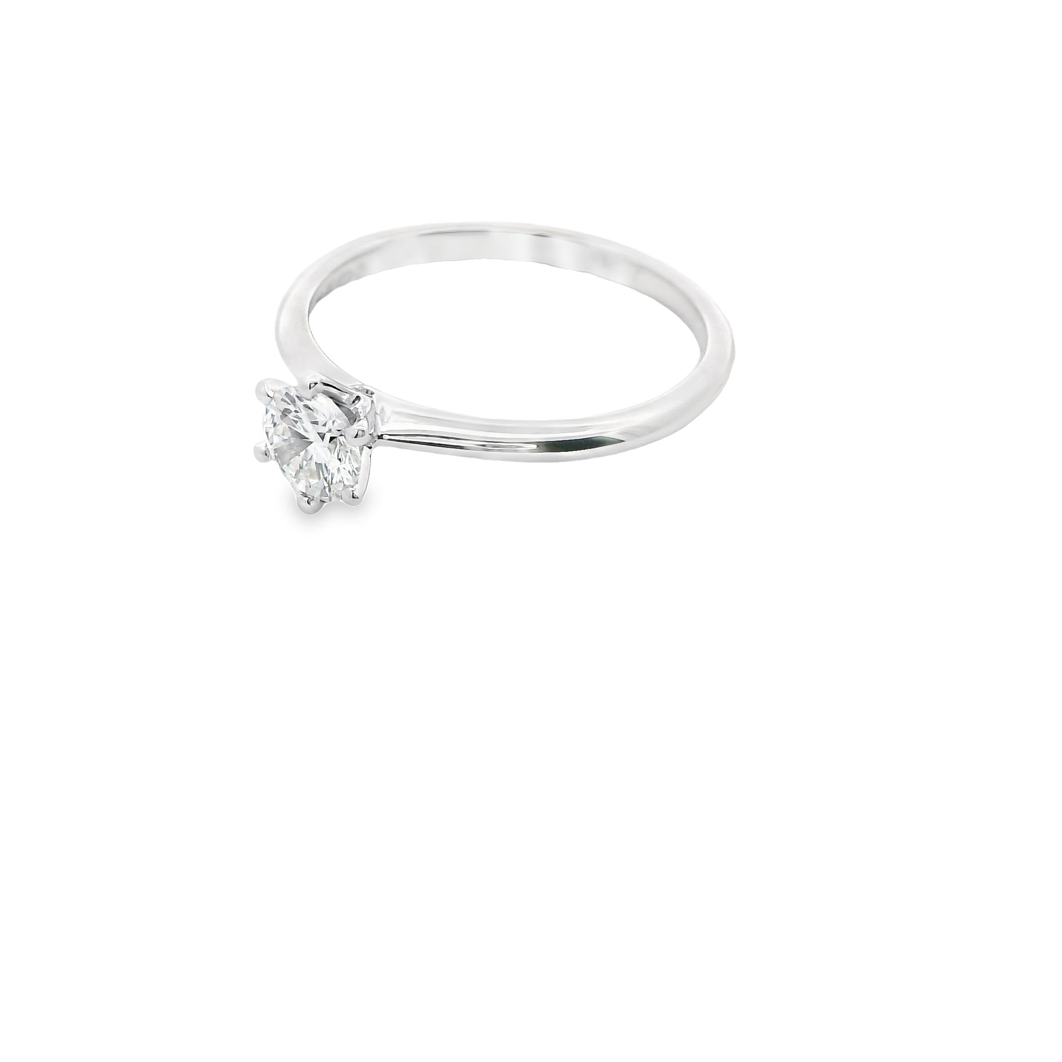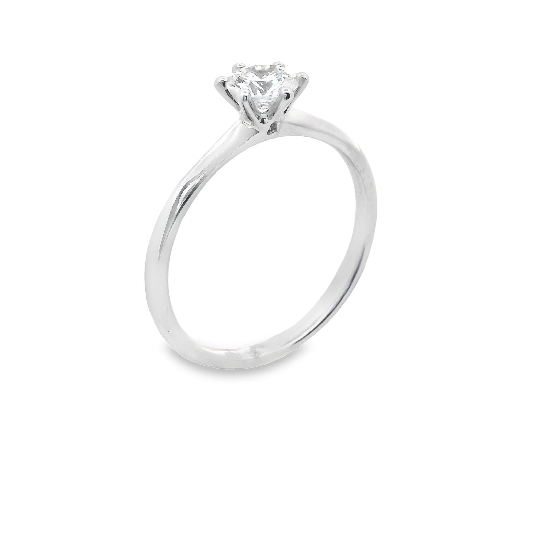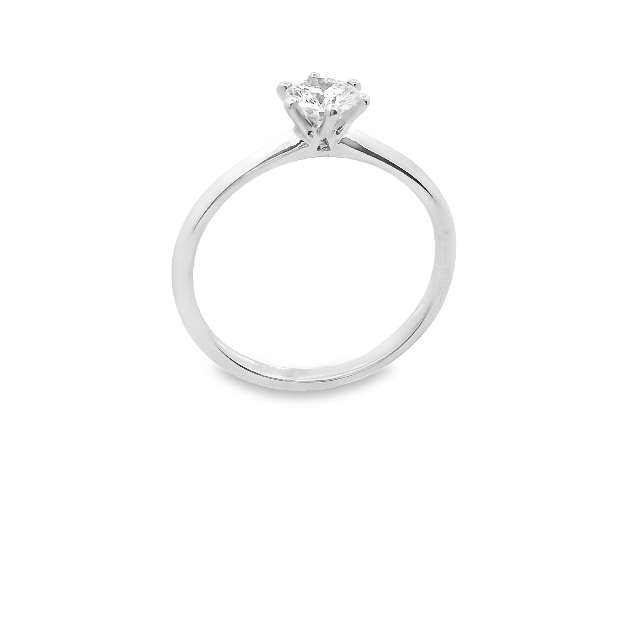 Deze exclusieve ring van Louis Bros is vervaardigd uit 14 karaat witgoud (2.29 gr.) en is gezet 1 briljant geslepen diamanten met een totaalgewicht van 0.49ct. De ring heeft een diameter van 6.5 mm, minimale breedte van 1.7 mm. en een hoogte van 5.25 mm. In een solitair sieraad wordt één enkele diamant gezet, die daardoor in het middelpunt van de belangstelling staat. De solitairs zijn klassiek en heel elegant. Ze passen bij elke outfit en zijn tijdloos.