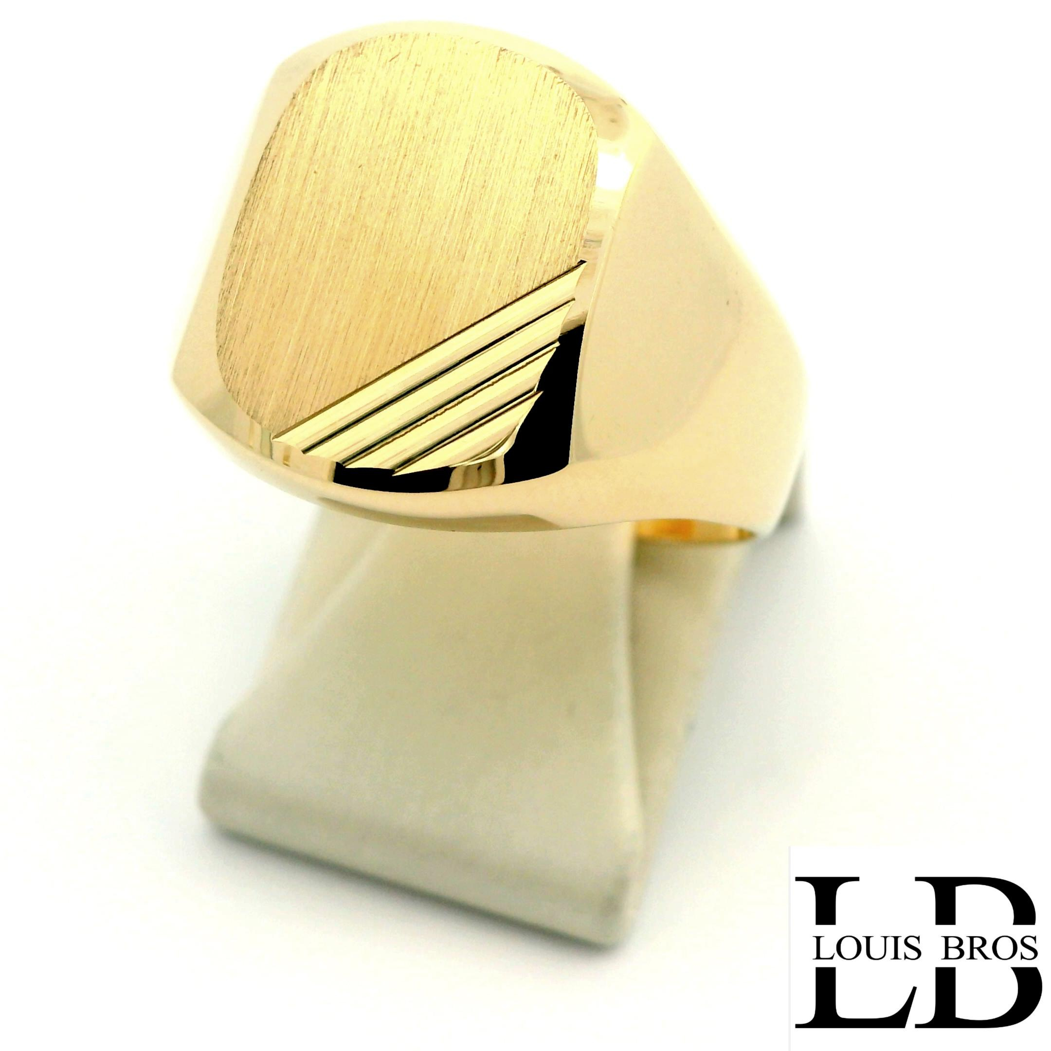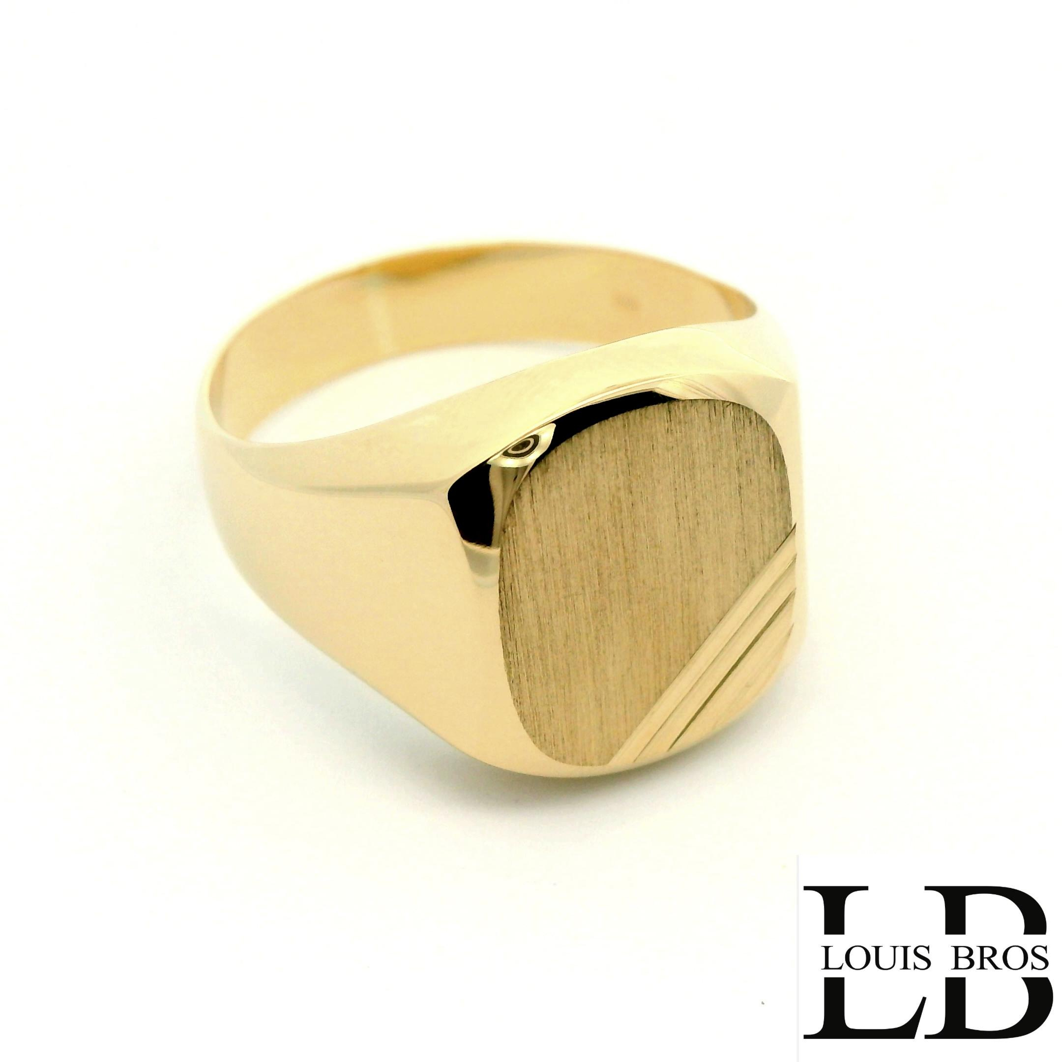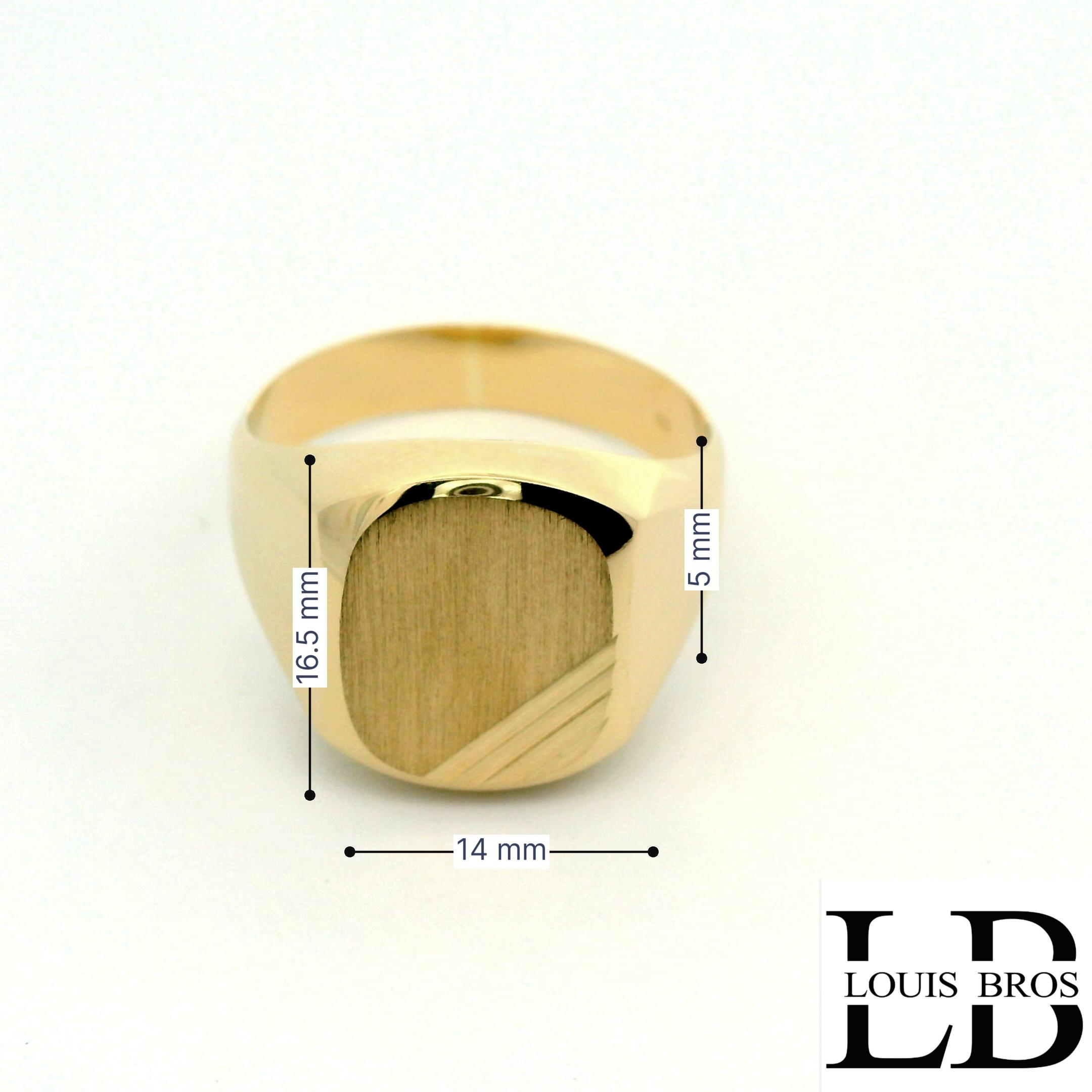 Deze heren zegelring van 14 karaat geelgoud (6.69 gr) heeft een krachtig en tijdloos ontwerp. De bovenkant van de ring is strak en mat geborsteld afgewerkt, wat zorgt voor een elegante en ingetogen uitstraling. Subtiele, schuin geplaatste lijnen aan de zijkant van de zegel geven de ring extra diepte en karakter, zonder het klassieke ontwerp te doorbreken. De solide vorm en comfortabele pasvorm maken deze ring uitermate geschikt voor dagelijks gebruik. Een klassieke zegelring voor de man die houdt van eenvoud, kwaliteit en vakmanschap.
